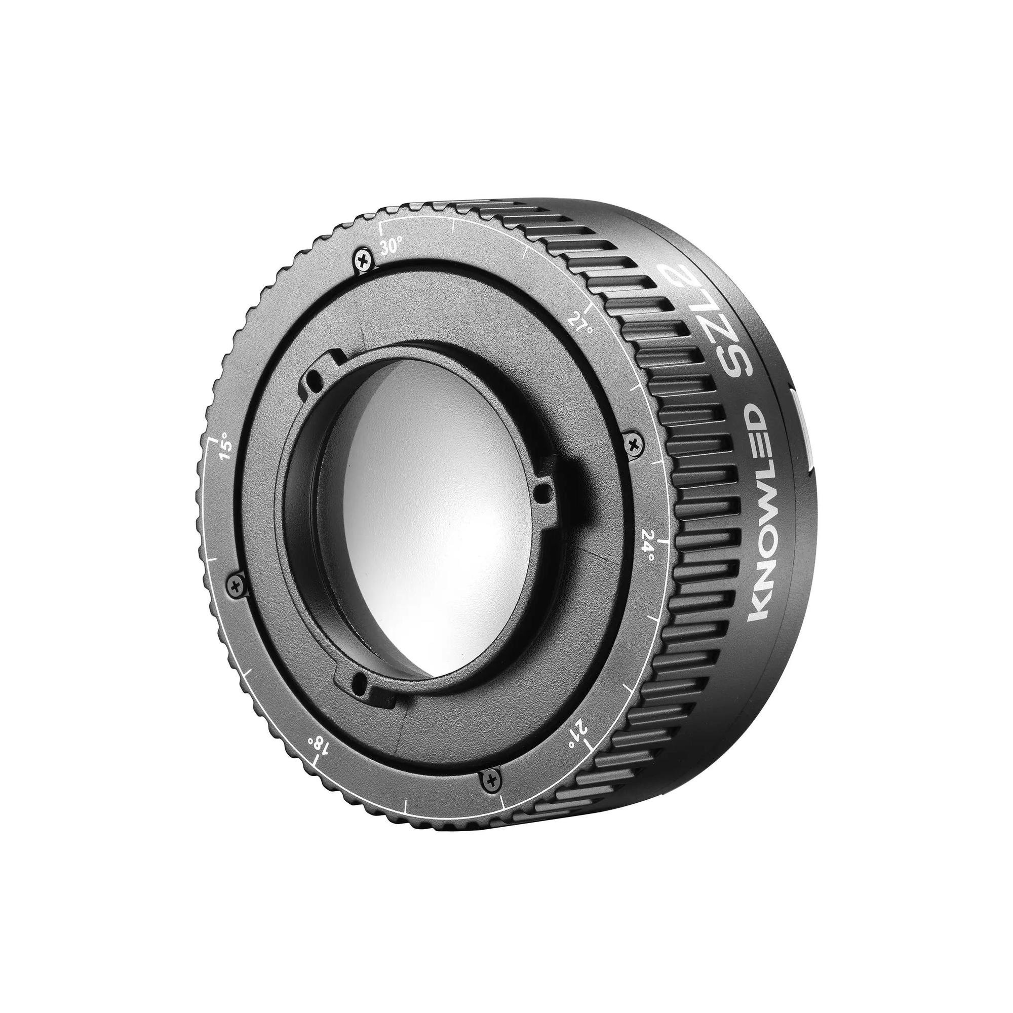 Оптическая насадка Knowled SZL2 – зум-объектив для светодиодных осветителей линеек Godox Knowled MS60 и Godox RS60. За счет изменения расстояния между источником света и линзой насадки можно концентрировать луч света с углом от 15° до 30°, создавая узко направленный и четкий или более широкий и размытый световой поток.