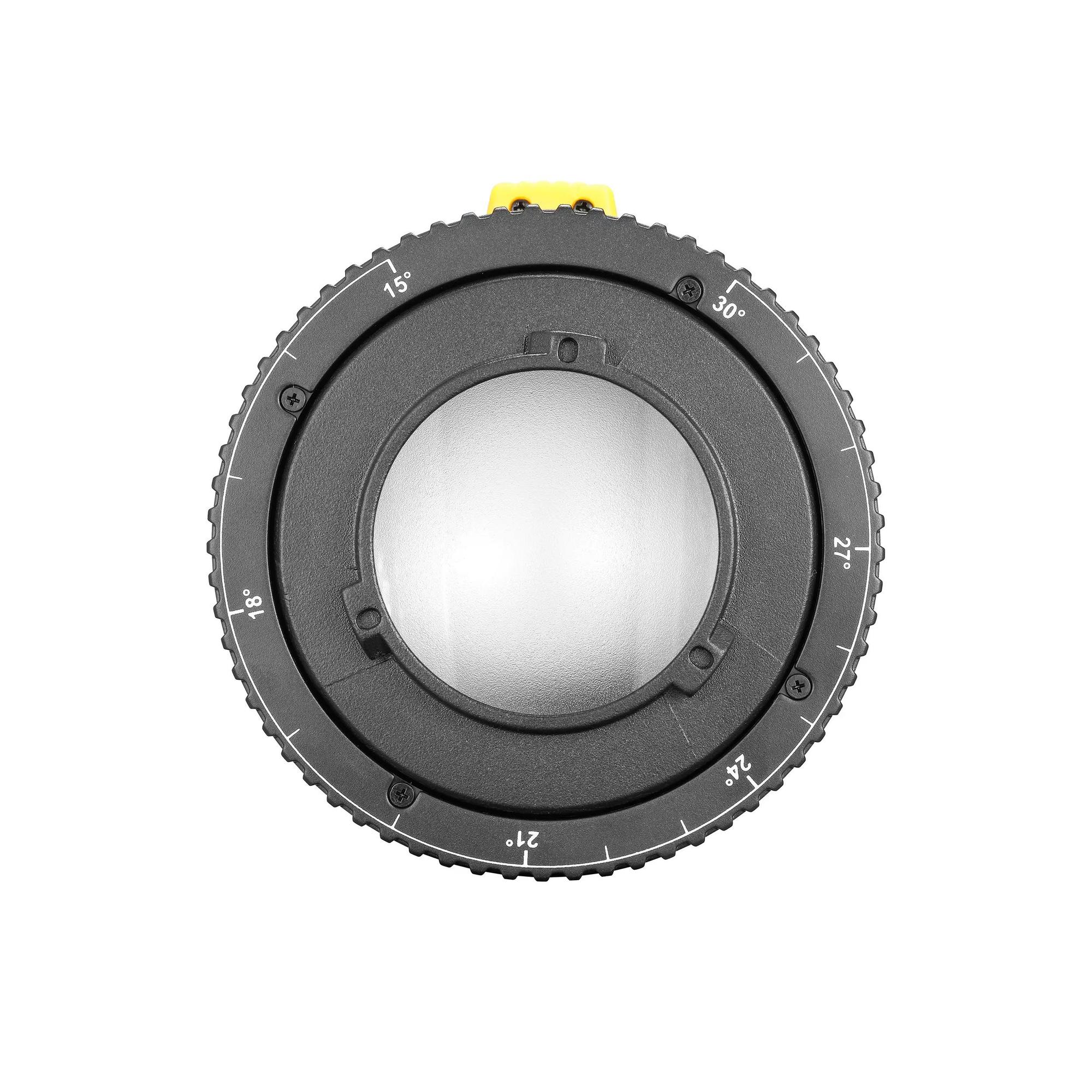 Фирменный байонет Godox Mini позволяет легко и быстро установить объектив на осветитель. На лицевой стороне зум-объектива имеется крепление Godox S, в которое можно установить дополнительные насадки, такие, как софтбоксы, фильтры, проекционные насадки из серий аксессуаров для осветителей S30 и S60.