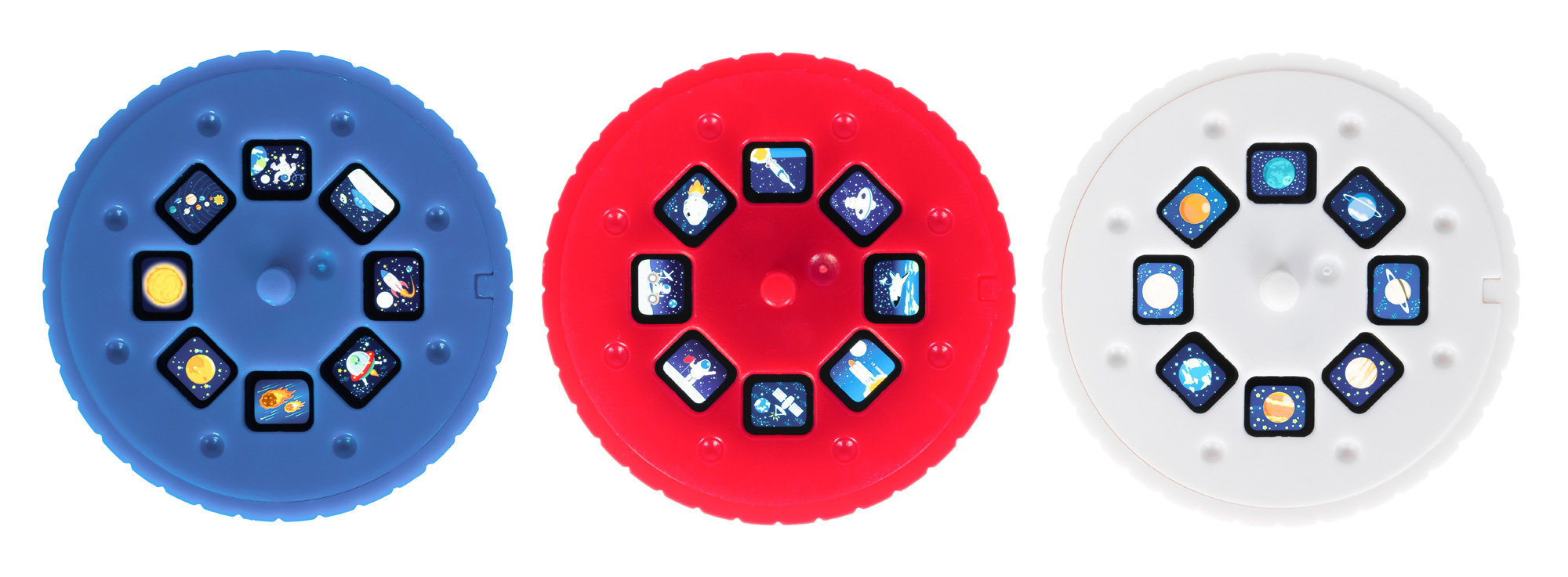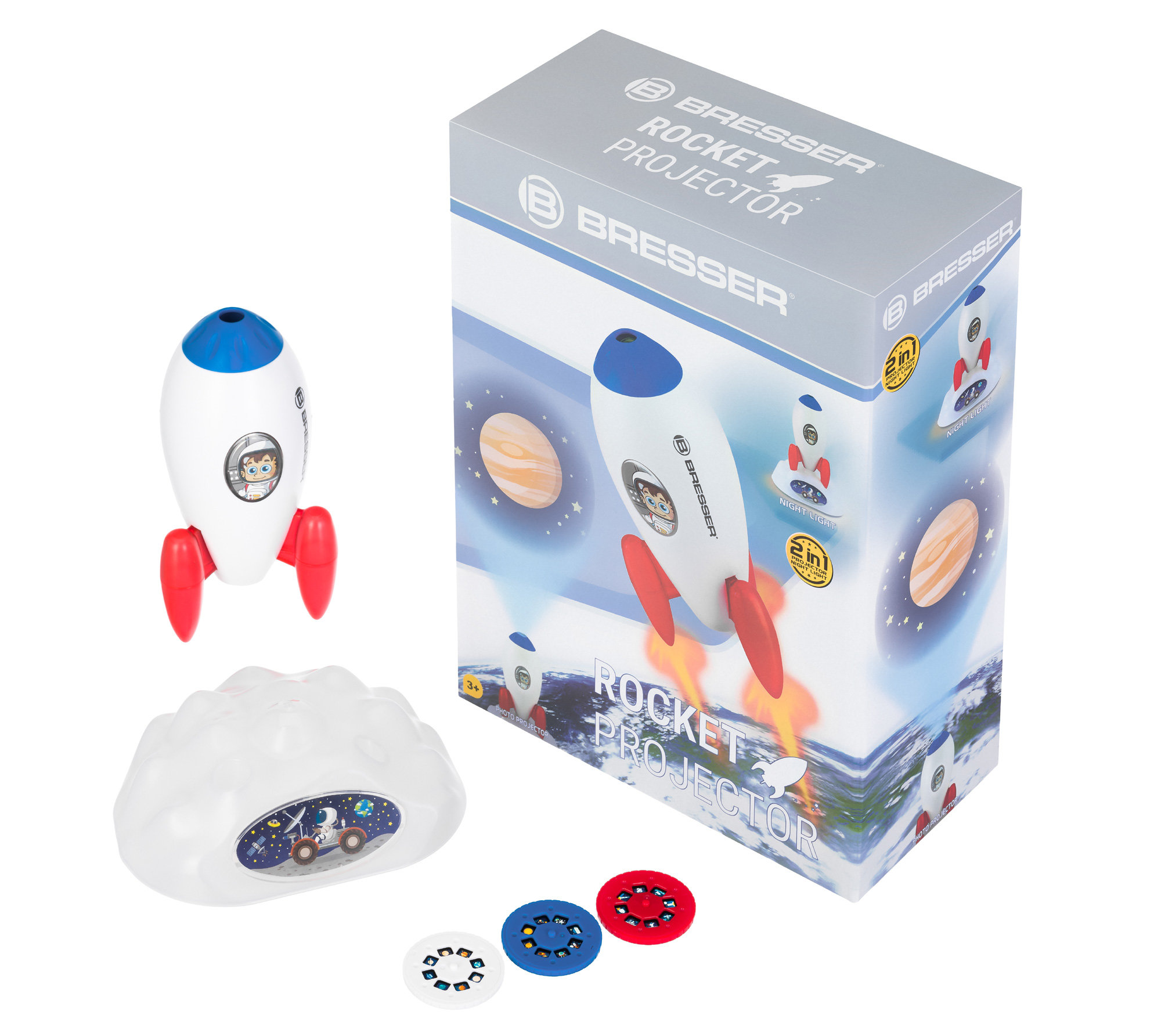 Bresser Space Rocket Slide – это набор «2 в 1», который станет прекрасным подарком ребенку и порадует всю семью. Как проектор он позволяет выводить на любую ровную поверхность 24 забавных изображения космоса – в комплекте 3 тематических слайда, по 8 изображений на каждом. Также прибор может превратиться в лампу-ночник с мягким светом. Ее можно использовать стационарно или, сняв с подставки, осветить себе путь – например, в темном коридоре квартиры.
