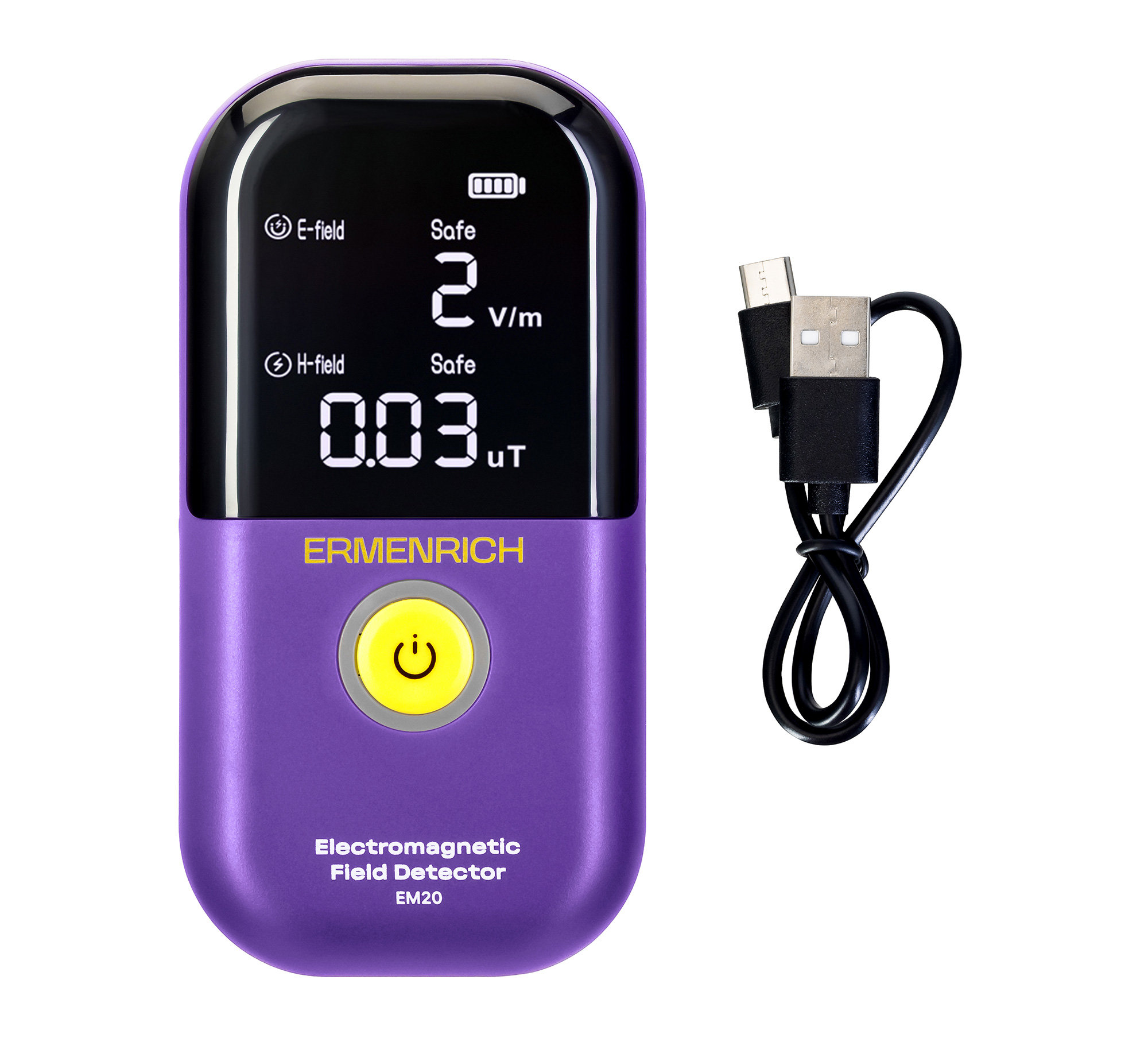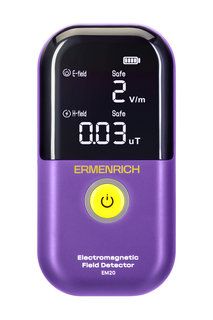 Детектор электромагнитного поля Ermenrich EM20 – ручной инструмент для контроля безопасности в жилых и рабочих помещениях, связанной с влиянием электромагнитных полей на состояние здоровья и психики человека. Превышение максимально допустимого уровня ЭМП приводит к нарушению работы мозга и внутренних органов, развитию депрессии, утомляемости и снижению работоспособности тех, кто находится в зоне влияния ЭМП на производствах, промышленных предприятиях и даже в обычных офисах. Задача детектора Ermenrich EM20 – обнаруживать и измерять электрические и магнитные поля и предупреждать пользователя об опасных значениях, требующих внимания. Данный прибор также можно применять для решения строительных задач, например поиска неисправностей в электропроводке (обрывов, коротких замыканий), обнаружения скрытой проводки и разметки перед установкой бытовой техники.