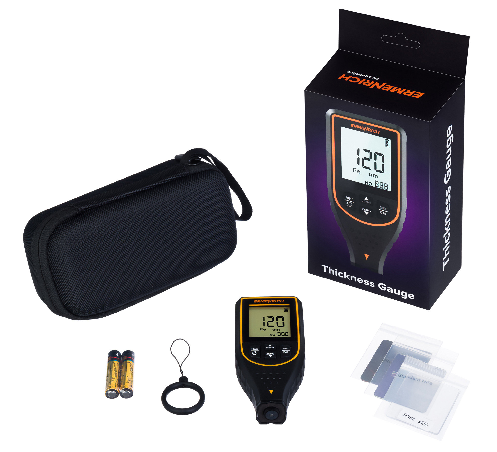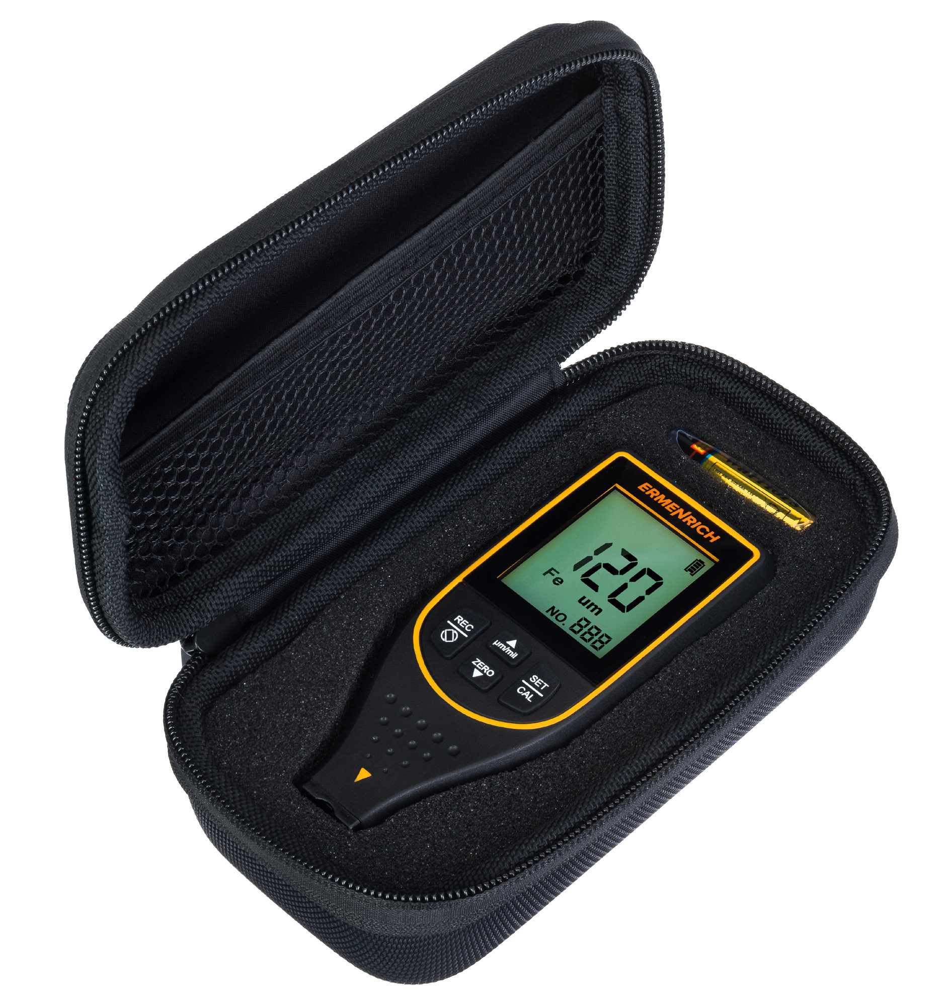 С помощью толщиномера можно проводить измерения толщины лакокрасочных и других типов покрытий, которые нанесены на металлические основания. Основание может быть как из черного, так и из цветного металла. Толщиномер Ermenrich NT50 относится к приборам неразрушающего контроля, т. е. при его использовании не происходит повреждения покрытия: сенсор лишь немного касается поверхности.