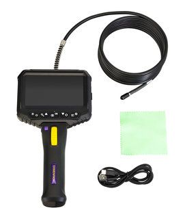 Камера обеспечивает широкий обзор с углом 90° и помогает изучать зоны, в которые не проникает свет, за счет 6 ярких светодиодов. Наконечник зонда, т. е. камера, диоды и пластиковая оболочка вместе, имеет диаметр 6,2 мм – идеальный размер, чтобы без труда проникнуть в нужное пространство через совсем небольшое отверстие, не требующее разрушения стены или демонтажа отделки. Поворот камеры возможен на 210° по часовой стрелке и против часовой стрелки, осуществляется вращением колеса на рукоятке прибора.