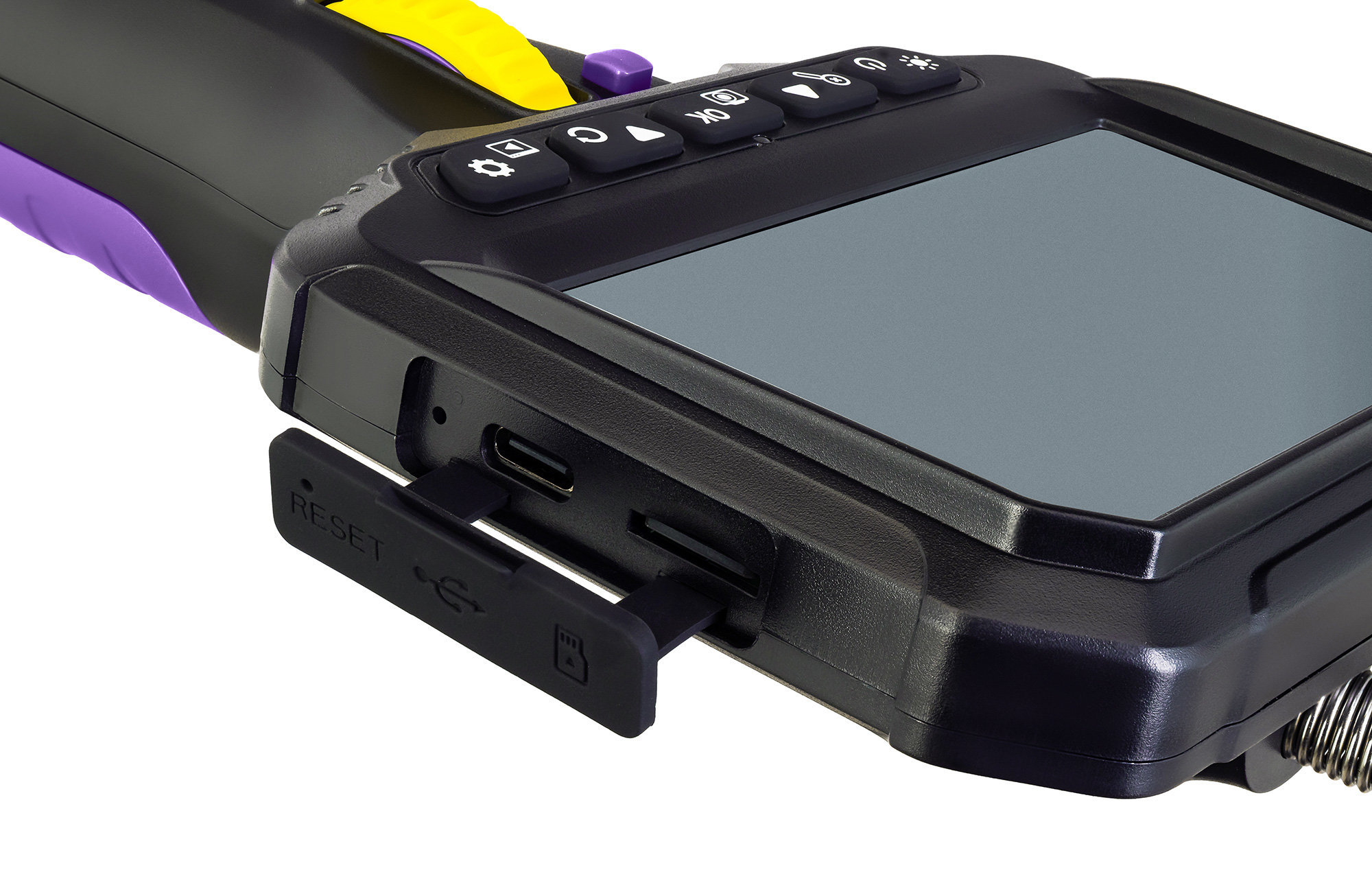 Видеоэндоскоп поддерживает установку TF-карт памяти объемом до 32 ГБ для хранения фото и видео, снятых на встроенный рекордер устройства. За формирование изображения, его высокое разрешение и четкость отвечает CMOS-сенсор OmniVision – именно благодаря ему пользователь может создавать снимки и видеоролики в качестве 1920x1080, 1280x720 или 640x480 пикс (на выбор). Во время работы с Ermenrich Seek VE80 изображение исследуемых пространств выводится на цветной IPS-дисплей с диагональю 4,3", на котором можно легко различить даже небольшие детали. Функциональность камеры дополнена цикличным ступенчатым зумом 1х/1,5х/2х, качественно приближающим картинку без возникновения эффекта размытия и зернистости.