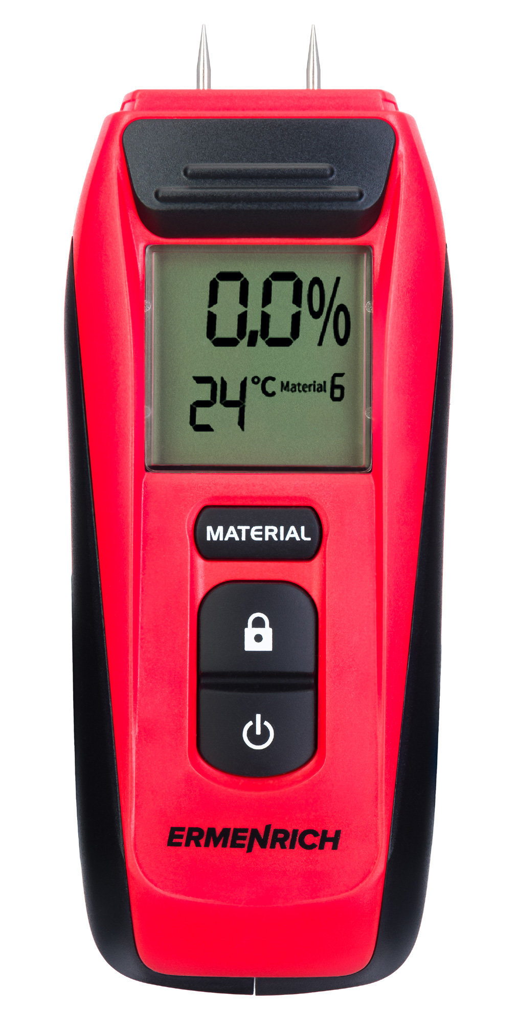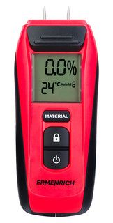 Датчик влажности Ermenrich Wett MW20, он же влагомер, используется для измерения влажности строительных материалов, в том числе цементного раствора, кирпича, штукатурки, древесины и многого другого. Для каждого материала используется свой режим работы, переключение осуществляется кнопкой на корпусе. Измеритель влажности пригодится на любом производстве, работающем с древесиной, а также будет незаменим в столярной мастерской, при возведении загородного дома или при ремонте в квартире.