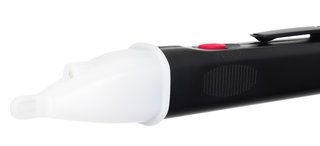Особенностью этой модели является возможность проводить измерения в двух диапазонах: 12–48 В и 48–1000 В, а также давать разные светозвуковые сигналы в зависимости от результата измерений. Тон зуммера будет различаться по частоте, а индикатор будет сигнализировать или миганием, или непрерывным светом. Также в детекторе есть функция фонарика – он используется в том числе и для проверки работоспособности прибора. Если фонарик светит тускло или вообще не светит, перед работой с сетями необходимо заменить батарейки – прибор работает именно от них.