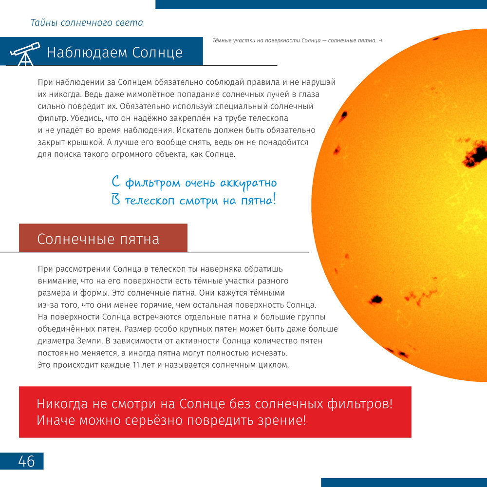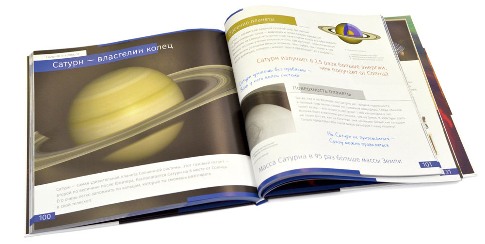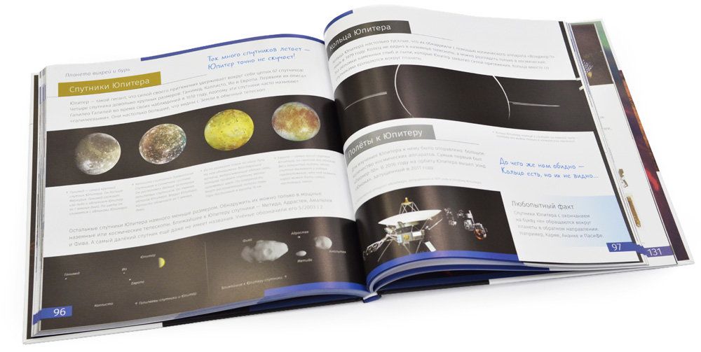 Книга знаний «Космос. Непустая пустота» (читать фрагмент) – познавательная книга для детей от 6 лет. Она заинтересует юного исследователя космоса и станет отличным обучающим пособием для ученика младшей или средней школы. На страницах книги подробно рассказывается об истории изучения космоса, создании телескопов и о самых важных и интересных астрономических объектах. Большая часть книги посвящена Солнечной системе: Солнцу, планетам и их спутникам, поясу Койпера. Отдельные разделы расскажут юному читателю о метеорах, кометах, туманностях, галактиках и звездных скоплениях.