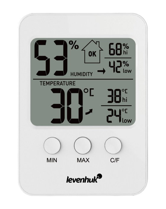 С термогигрометром Levenhuk Wezzer BASE L30 вы сможете легко отслеживать динамику главных параметров микроклимата – температуры и влажности. Это позволит своевременно принимать меры для того, чтобы находиться в помещении было комфортнее. Прибор пригодится в городской квартире, офисе или загородном доме. Он не только проводит измерения, но и запоминает предельные значения параметров, а также прогнозирует динамику их изменений на ближайшее время.
