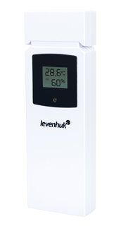 Датчик связывается с основным блоком термометра Levenhuk Wezzer BASE L50 по радиоканалу, оба прибора работают от батареек, поэтому никаких проводов для работы не требуется. Вверху экрана основного блока расположены часы, ниже – значения температуры, которые отображаются удобными для восприятия крупными цифрами. У датчика тоже есть небольшой экран, благодаря чему узнать результаты его измерений можно прямо в месте установки. Кроме температуры, датчик измеряет и выводит на свой экран еще один параметр – влажность воздуха на улице.