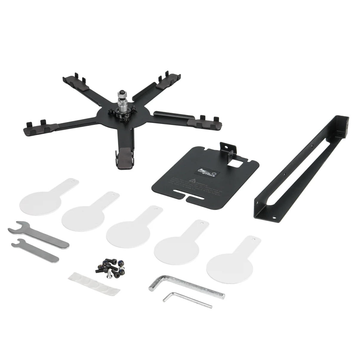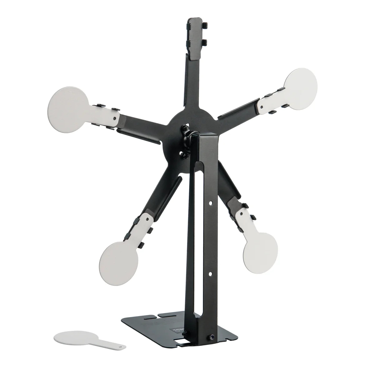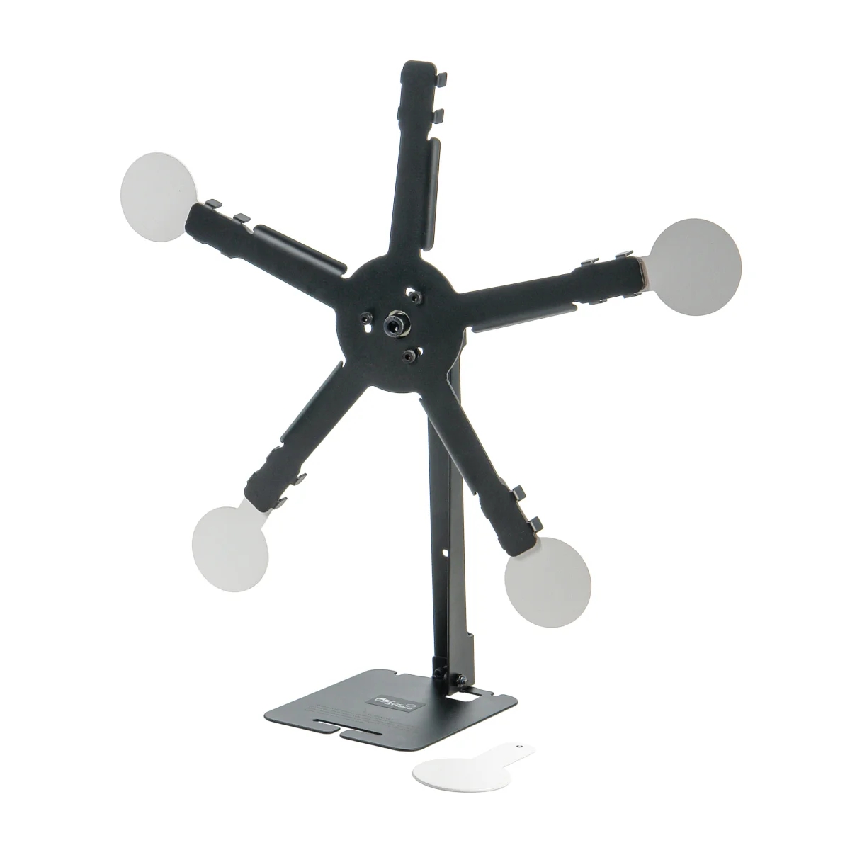 BLACK STRIKE AT35-5 – разборная вращающаяся мишень «звезда» на подставке с 5 стальными мишенями, установленными на магнитах, для развлекательной и тренировочной стрельбы из пневматического оружия.