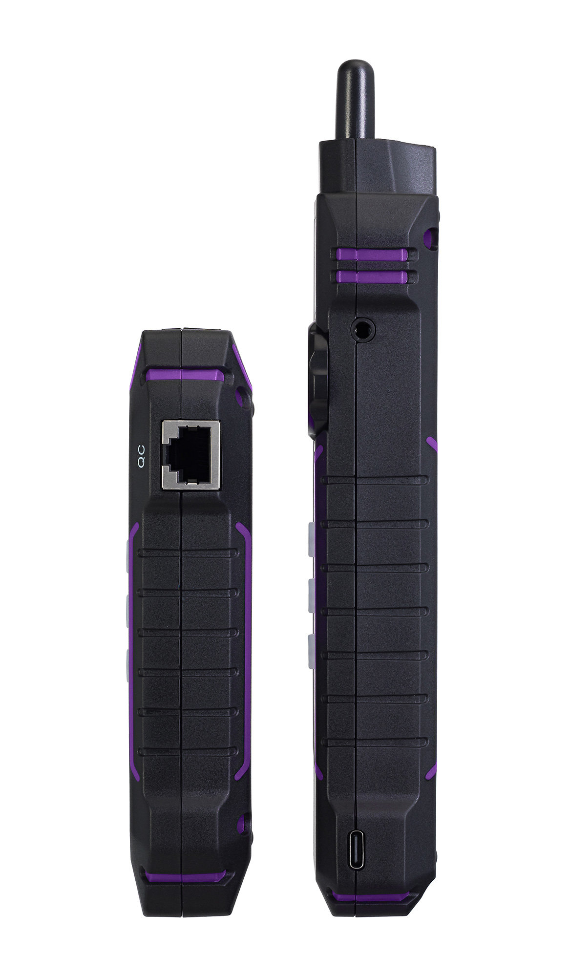 Кабельный тестер Ermenrich NetGeeks – это два устройства: передатчик и приемник. Каждое устройство питается от своего литий-полимерного аккумулятора емкостью 1400 мАч. Приемник оснащен фонариком для работы в темноте и разъемом для наушников, в которых удобно работать при сильном шуме (наушники входят в комплект).