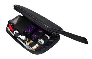 Комплект для тестирования включает в себя 3 устройства: передатчик, приемник и дистанционный модуль. На передатчике есть ЖК-дисплей с подсветкой и кнопки управления. Кроме того, в приемнике предусмотрен встроенный фонарик. Передатчик питается от 3 заряжаемых батарей типа AAA, в приемник и дистанционный модуль устанавливают по одной батарейке 9 В (источники питания не входят в комплект).