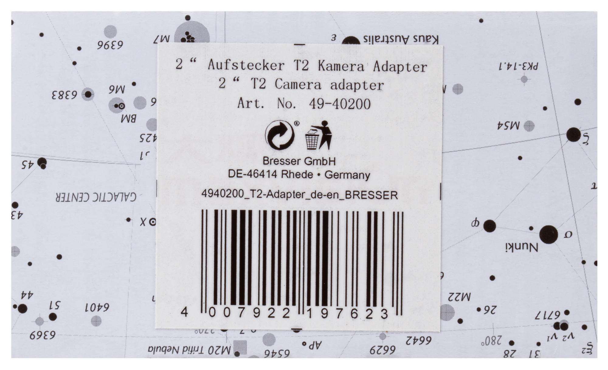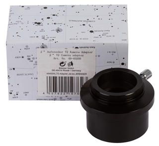Адаптер для телескопа Bresser 1,25/2" с T2-резьбой предназначен для телескопов с фокусером 2 дюйма. Он позволяет устанавливать на них оптические аксессуары с посадочным диаметром 1,25 дюйма. Кроме того, адаптер имеет Т2-резьбу, т. е. его можно совместить с зеркальной камерой, чтобы заниматься астрофотографией. Обратите внимание: Т2-кольцо в комплект поставки не входит.