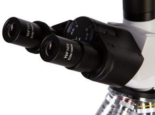 Входящие в комплект объективы и окуляры позволяют получить увеличения в диапазоне от 40 до 1000 крат. Благодаря револьверному устройству на 4 объектива можно быстро изменить увеличение прямо в процессе работы. Регулируемое межзрачковое расстояние и диоптрийная коррекция окуляров позволяют настроить микроскоп под индивидуальные особенности каждого пользователя.