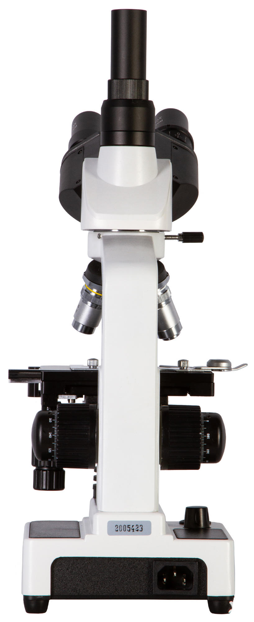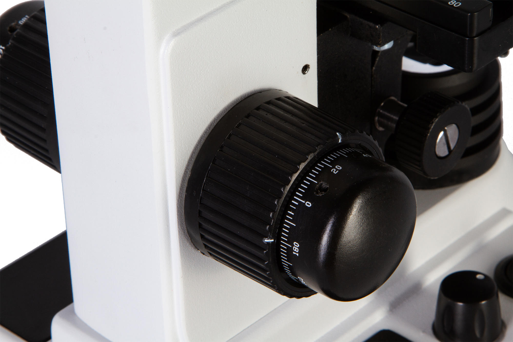 Микроскоп оборудован подвижным координатным столиком с нониусом. Есть возможность закрепить сразу два препарата. Галогенная подсветка регулируемой яркости и ручки грубой и тонкой фокусировки обеспечивают удобство в процессе исследований.