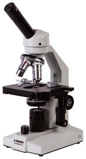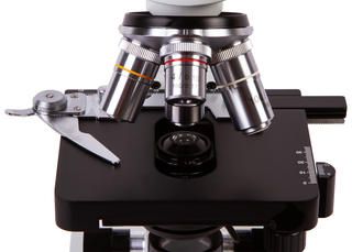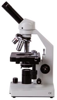 В микроскопе установлена монокулярная насадка. Она имеет небольшой наклон, что удобно, если планируются длительные наблюдения. Ахроматические объективы разного увеличения передают изображение хорошего качества, позволяя видеть мелкие детали четко и ясно. Общее увеличение микроскопа можно изменять в диапазоне от 40 до 1000 крат.