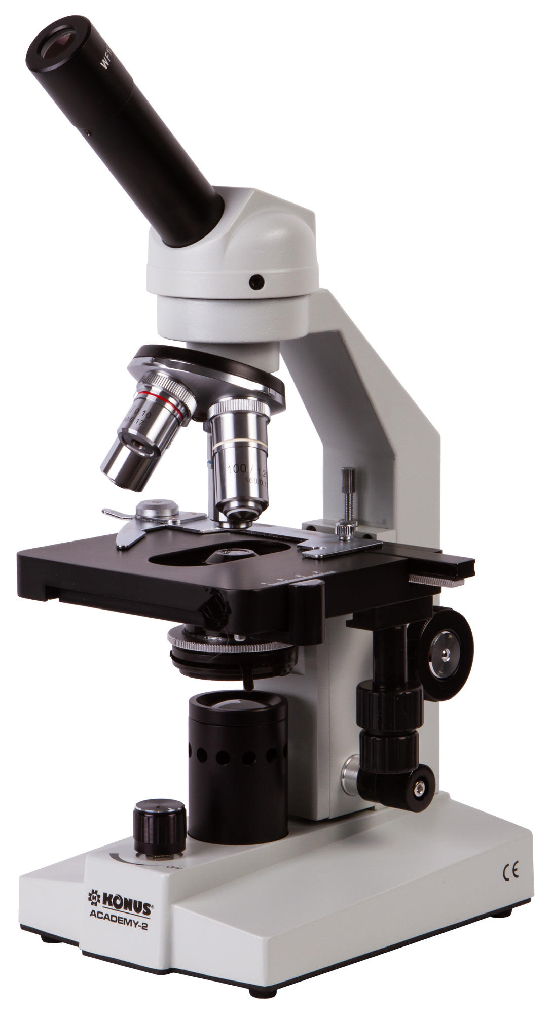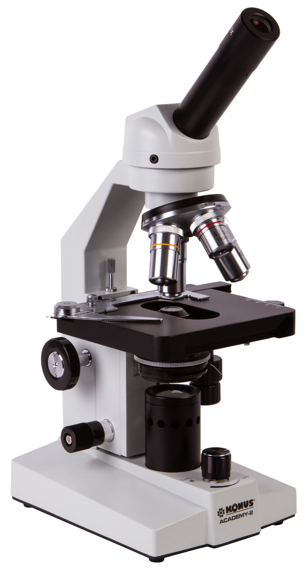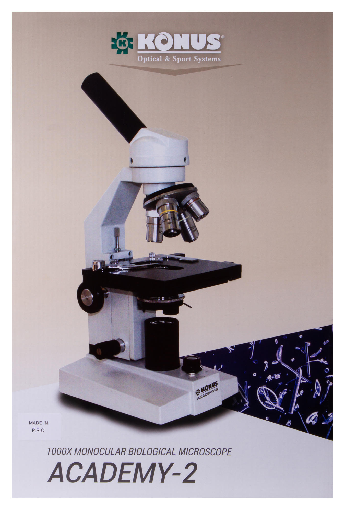 Konus Academy-2 1000x – классический биологический микроскоп для исследования образцов в светлом поле. Он позволяет использовать не только «сухой» метод, но и масляную иммерсию. Микроскоп станет отличным помощником в изучении основ микробиологии и поможет совершенствоваться в любимом научном хобби. Это прекрасный выбор для школьника или студента, а также нетребовательного любителя.