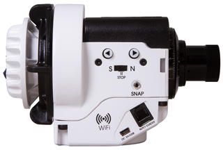 Внутри монтировки установлен модуль Wi-Fi, поэтому к ней можно подключаться дистанционно при помощи смартфона или планшета. Управление осуществляется из приложения Star Adventurer mini Console, которое можно бесплатно скачать для iOS и Android. Удобно, что проведя настройку в приложении, необязательно продолжать использовать Wi-Fi. Даже при отключенной сети монтировка будет помнить все введенные корректировки и использовать их во время работы. Также можно выбрать один из предустановленных режимов.