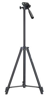 Поворотная пластиковая головка с несъемной площадкой позволит придать установленному на нее оборудованию идеальное положение, откидывая площадку вбок на 90°, поворачивая головку в горизонтальной плоскости и наклоняя ее вверх и вниз. Высота ножек и центральной вертикальной секции регулируется, за надежность крепления и устойчивость отвечают флип-замки. Ножки штатива обрезинены для предотвращения скольжения. Дополнительно штатив оснащен пузырьковым уровнем.
