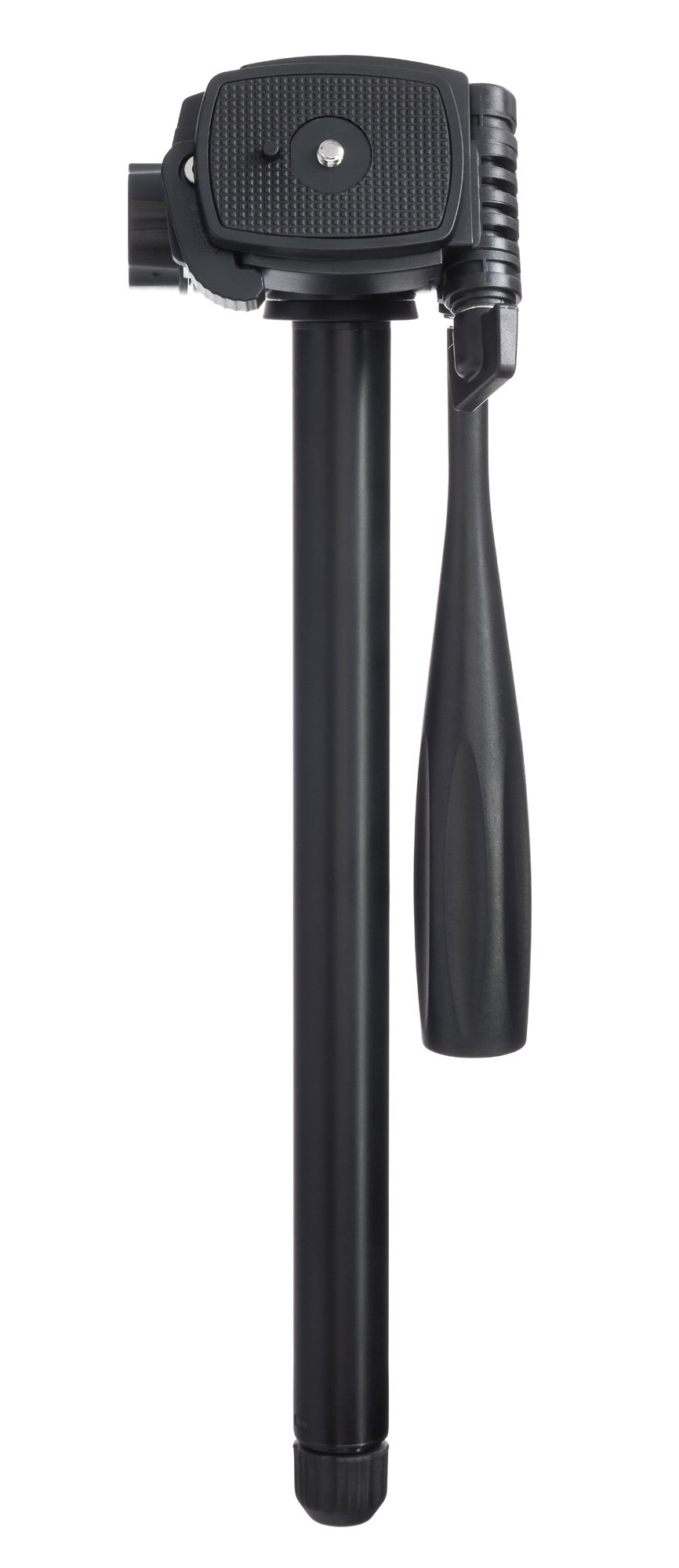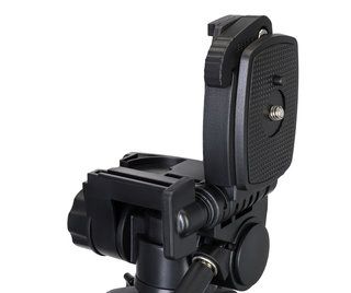 Поворотная головка обеспечит идеальное расположение прибора на штативе: по горизонтали она вращается вокруг себя на 360°, также доступны наклоны вперед и назад, фиксатор отклоняется до 90° вбок. Центральный сегмент штатива можно использовать как отдельный монопод.
