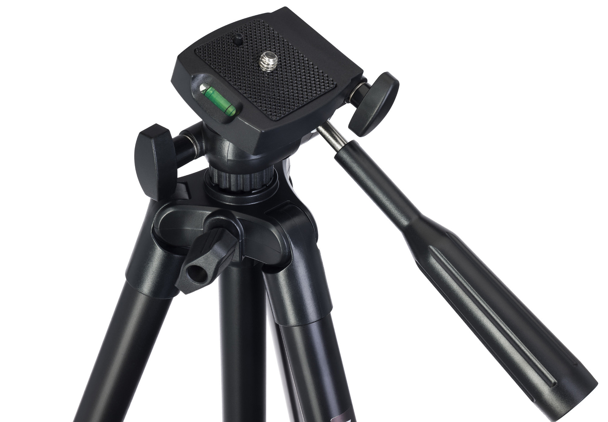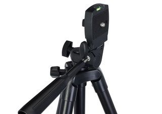 Благодаря поворотной головке пользователь может расположить выбранный прибор под нужным ему углом, поворачивая его в горизонтальной плоскости и наклоняя вперед и назад. Установочная площадка несъемная и откидывается вбок на угол 90° для установки оборудования в оптимальное положение. Высота штатива регулируется: это можно сделать как с помощью выдвижения ножек, так и вытянув центральную штангу. Надежные флип-замки обеспечивают устойчивость конструкции, обрезиненные ножки предотвращают скольжение. Проверить, насколько ровно установлен штатив, пользователь может при помощи встроенного пузырькового уровня.