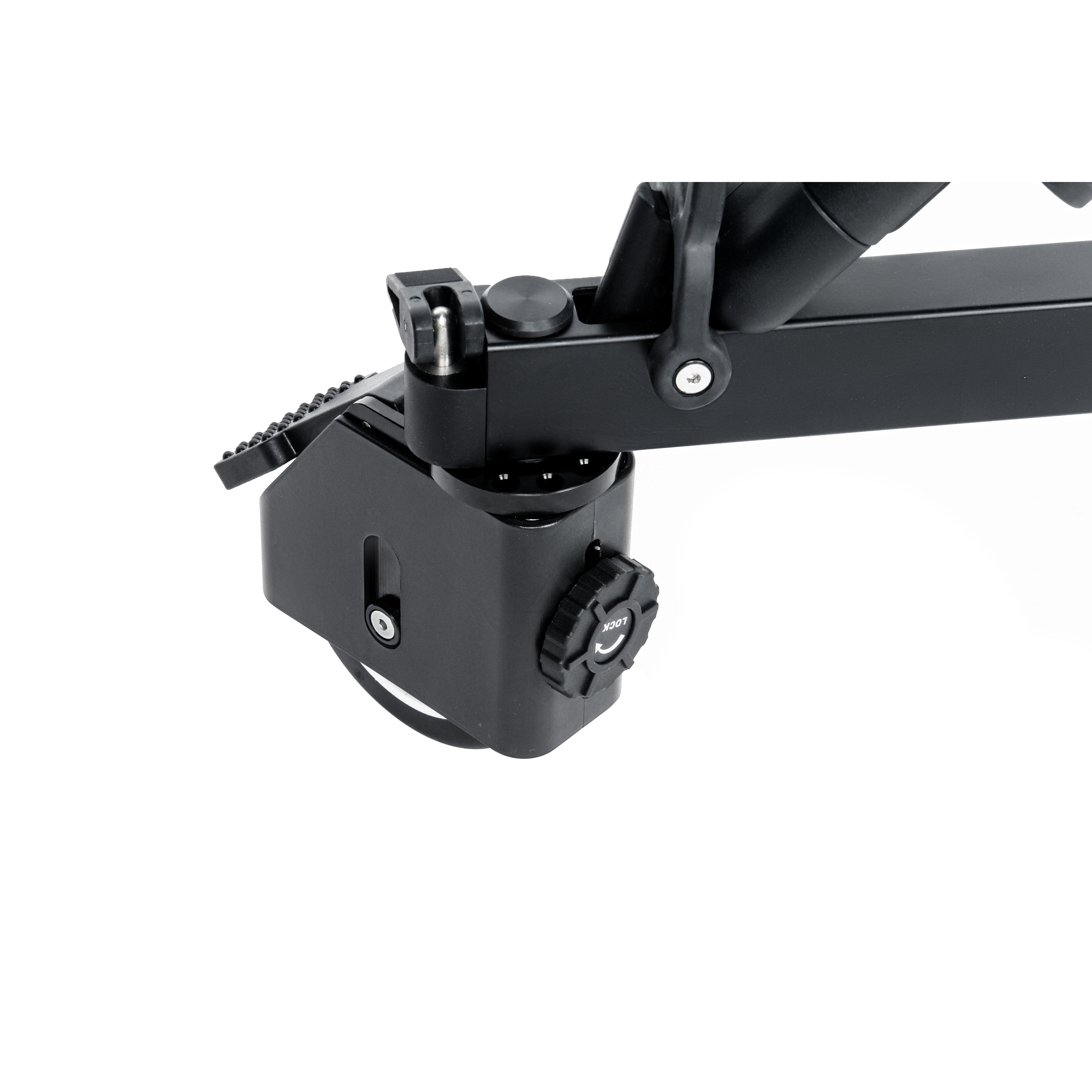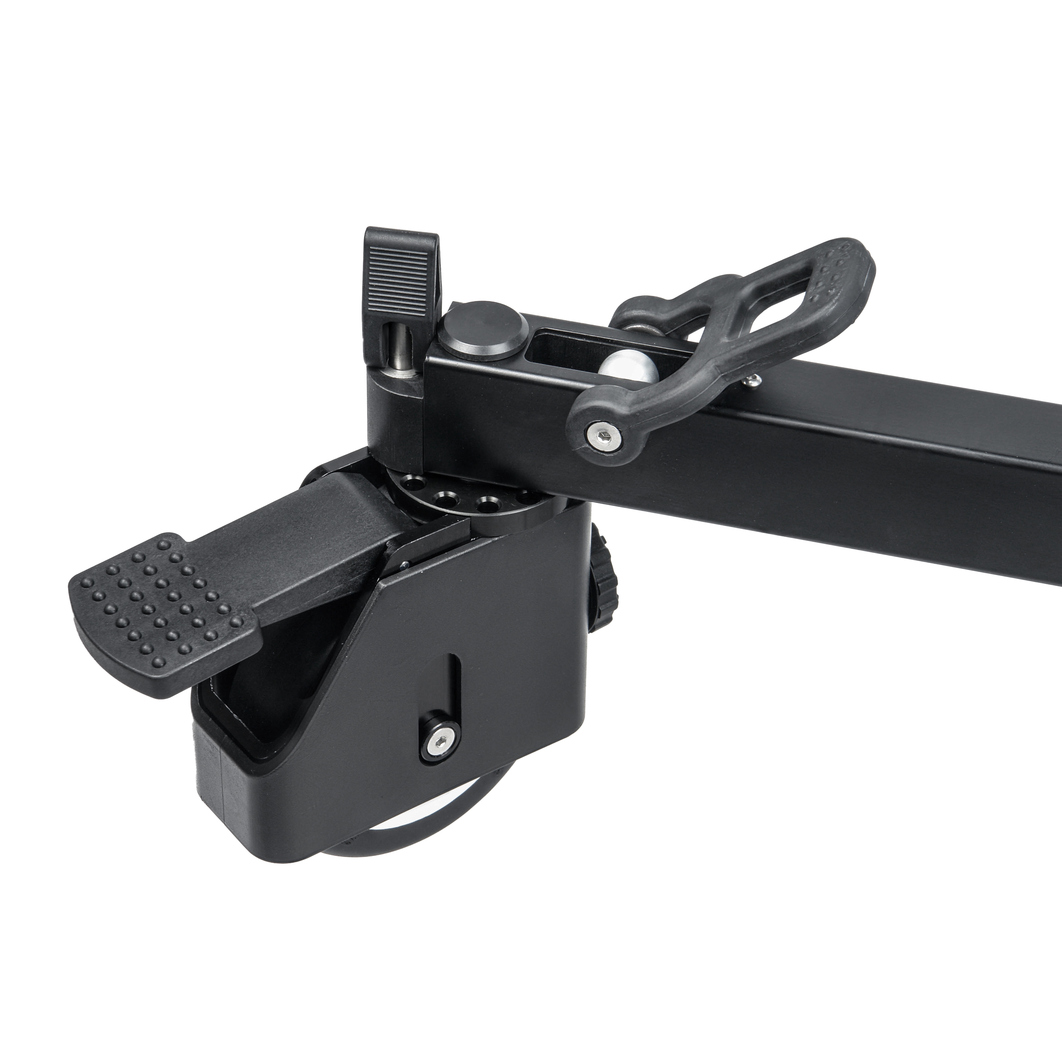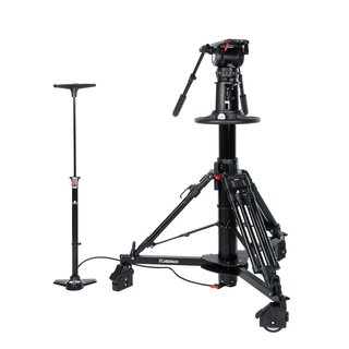 Высота пьедестала (колонны) регулируется в пределах 92.5 – 171 см. Жесткая складная рамная конструкция штатива из алюминиевого сплава обеспечивает оператору необходимую мобильность и уверенность в качестве отснятого материала.