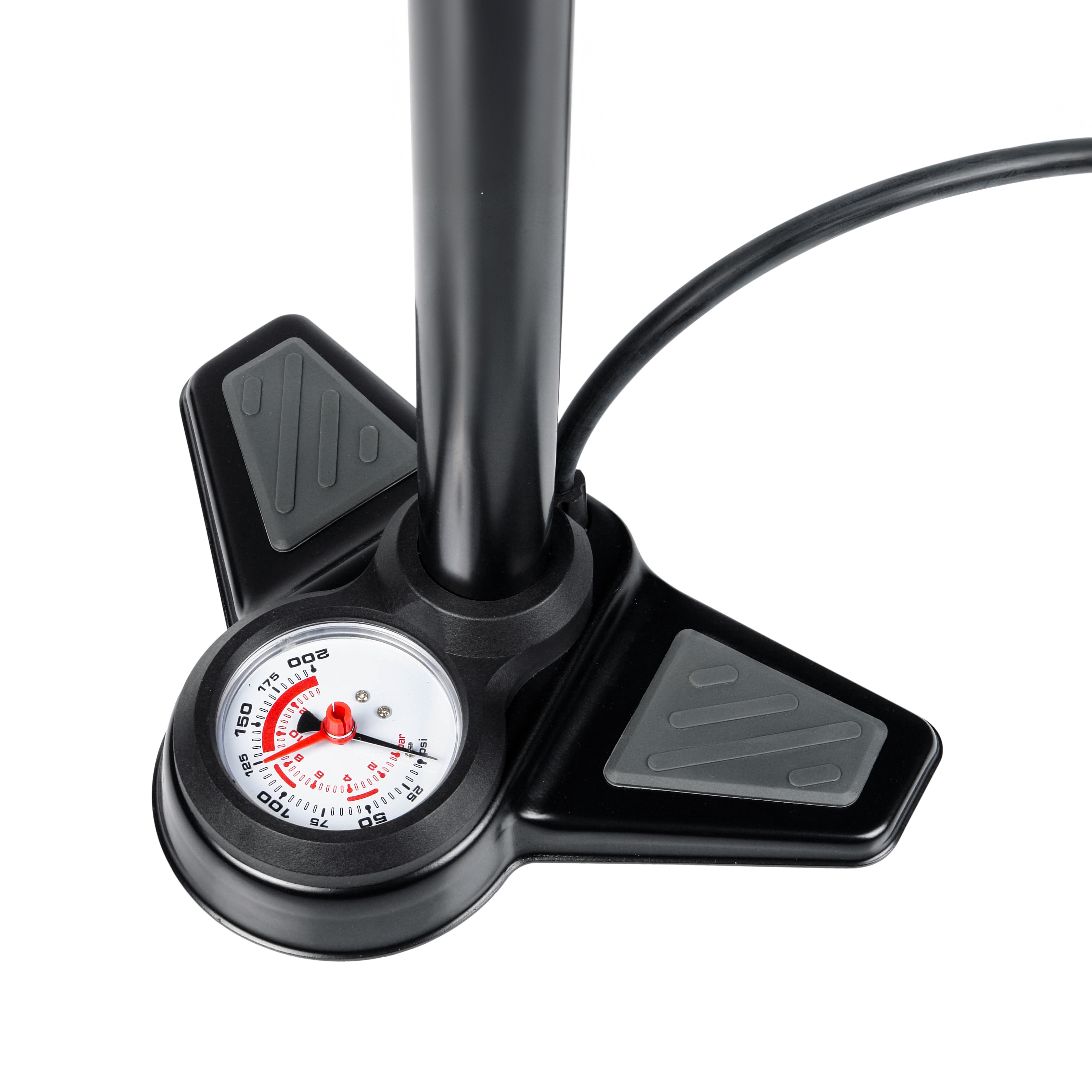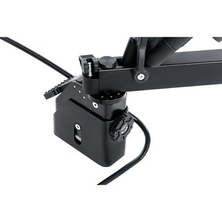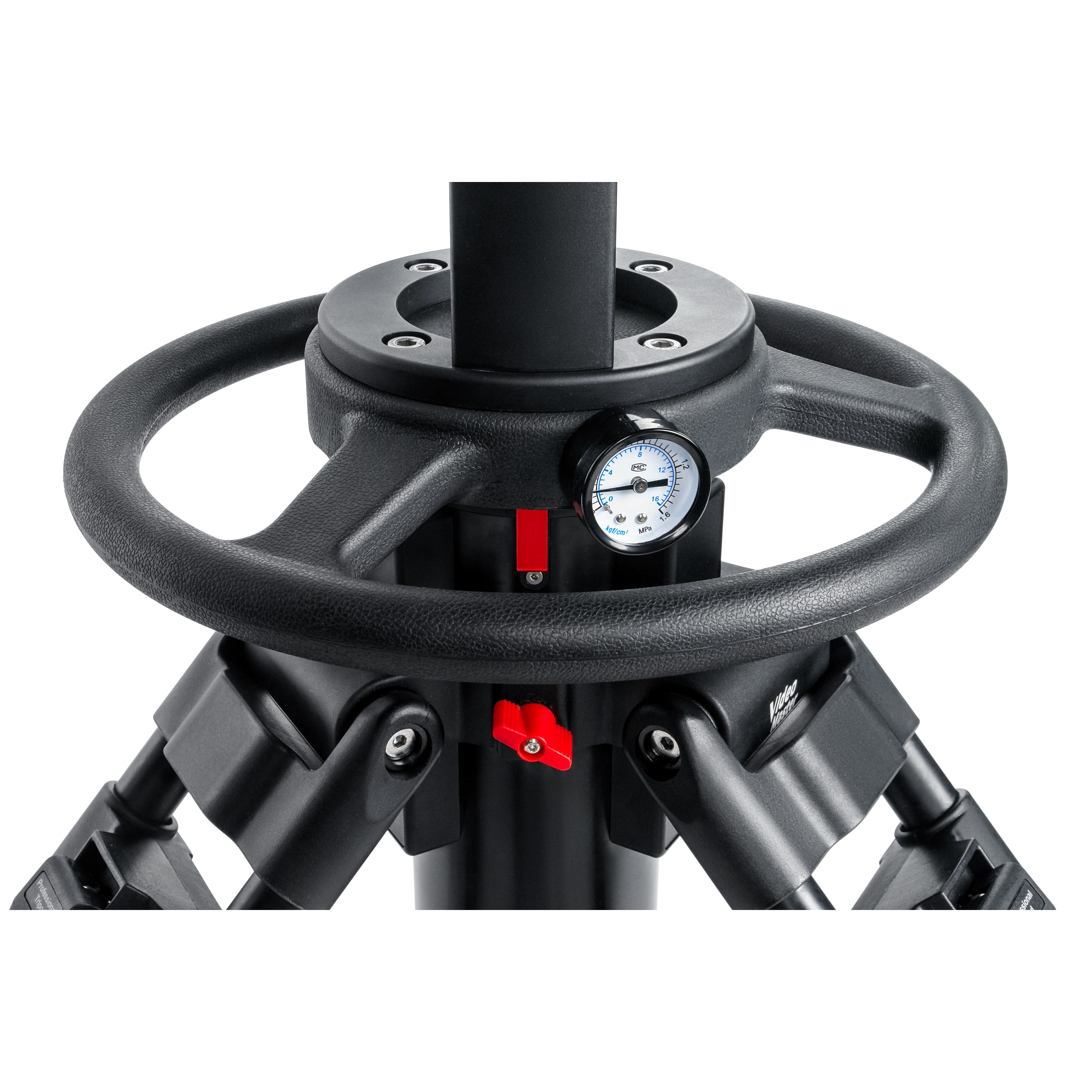Грузоподъемность пьедестала повышается до 40 кг за счет увеличения давления воздуха в пневматической центральной колонне. Воздух накачивается в колонну через штуцер при помощи комплектного пневматического насоса. Регулируемая воздушная система помогает избежать резких вертикальных движений, обеспечивает плавный спуск и подъем, простое и точное позиционирование камеры.