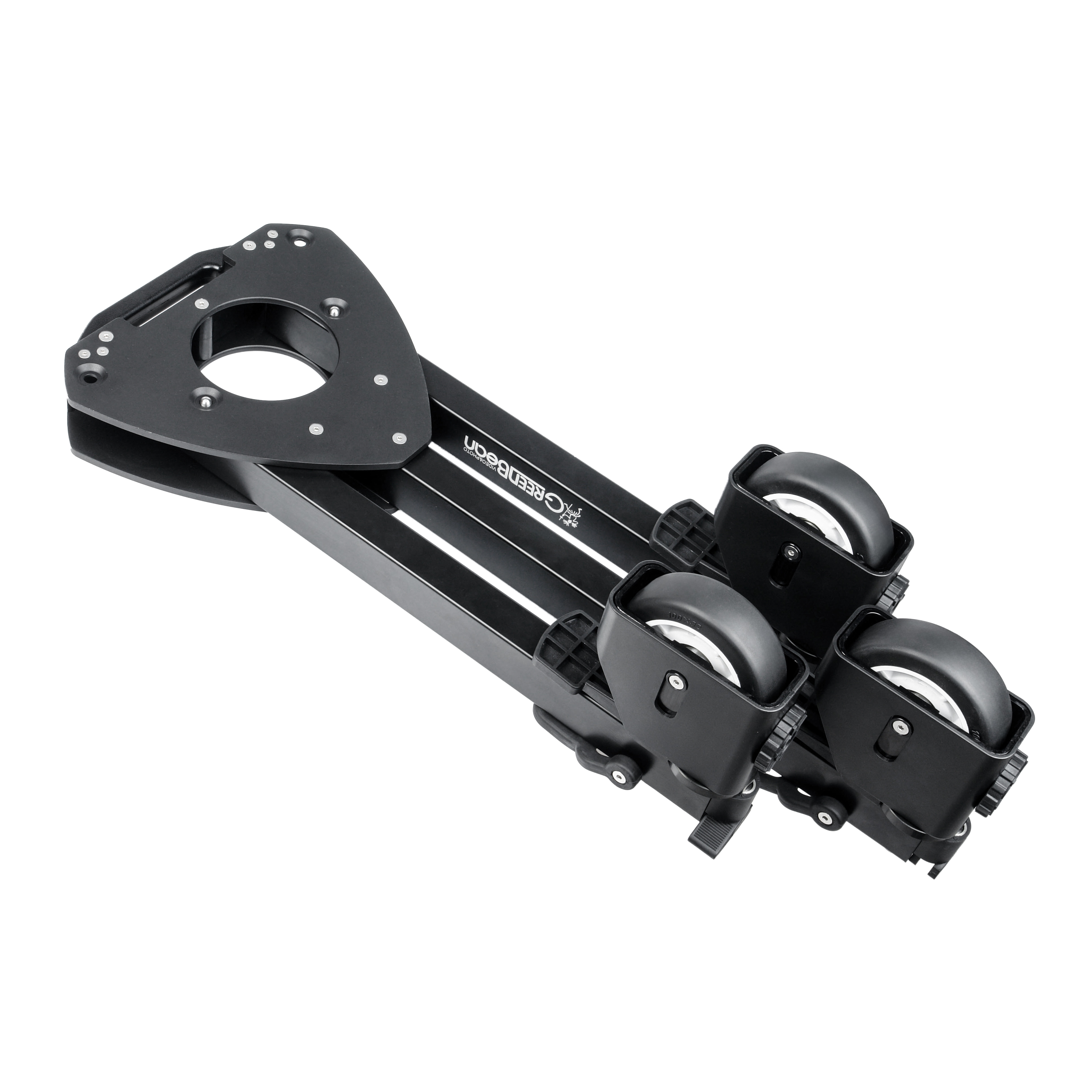 Тележка выдерживает нагрузку до 100 кг, она может легко работать с видеоголовой и совместимой камерой, не превышая предельного веса тележки.