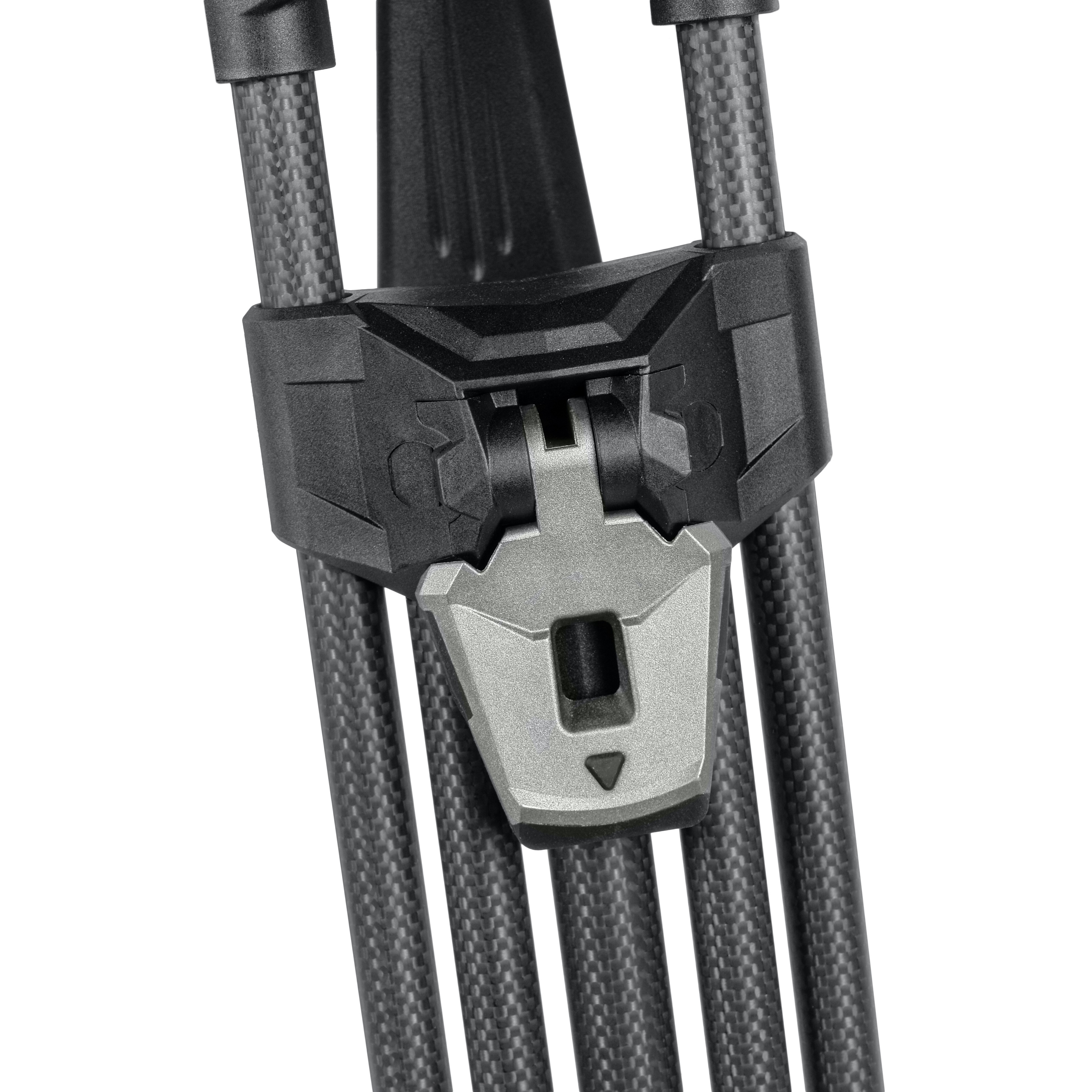 Ноги штатива имеют три секции из карбоновых трубок диаметром 14 и 18 мм. Система клипсовых зажимов Fast Lock объединяет все три секции и позволяет освободить или закрепить их одним движением, что делает процесс установки штатива быстрым и удобным. Клипсы зажимов выполнены из пластика ABS, устойчивого к износу и мелким повреждениям.