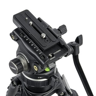 Штативная голова из сплава алюминия и магния устанавливается на треногу с помощью шаровой базы диаметром 75 мм и фиксируется винтовым механизмом. Полусферическое крепление с пузырьковым уровнем позволяет быстро и точно выровнять горизонт, не меняя положение ножек штатива.
