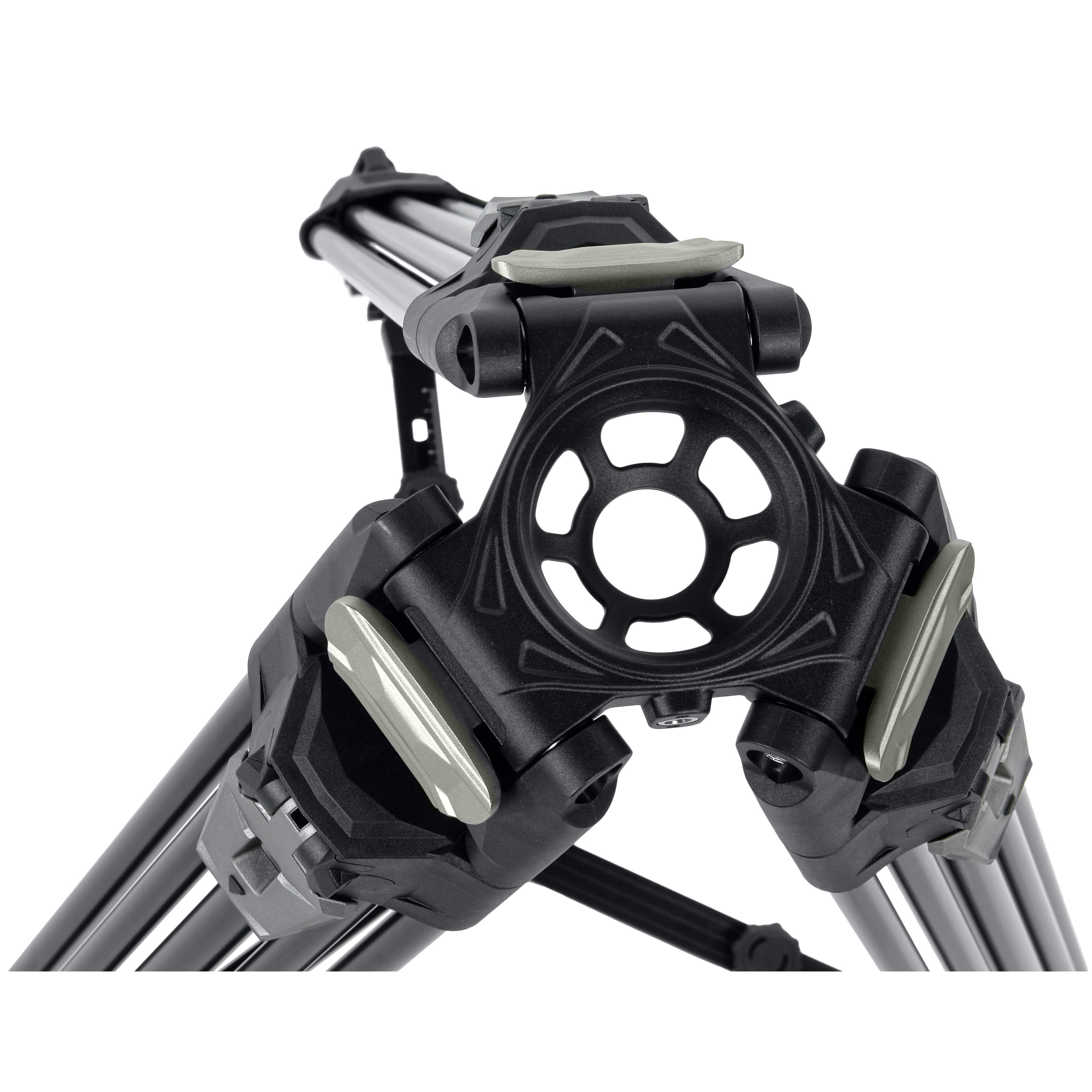 Для устойчивости и контроля над положением ножек трипод оснащен верхней телескопической растяжкой, которая фиксируется в заданном положении с помощью винтов.