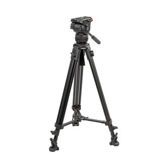 Головка закрепляется на штативной шаровой базе Ø75 мм, что позволяет быстро установить камеру и настроить ее горизонтальное положение для съемки. Жесткий штатив с прочными алюминиевыми сдвоенными ногами и телескопической средней растяжкой обеспечивает оператору необходимую мобильность и уверенность в качестве отснятого материала. Комплект штатива дополняет сумка для переноски.