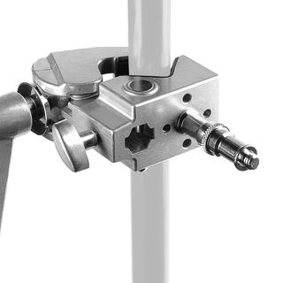 В комплектацию входит съемный шпигот Baby Pin 5/8" с винтами 3/8'' и 1/4'', который устанавливается в гнездо с винтовым фиксатором и пружинным предохранителем. Также шпигот может крепиться в резьбовое отверстие 1/4'' на корпусе держателя. Общая грузоподъемность до 15 кг.