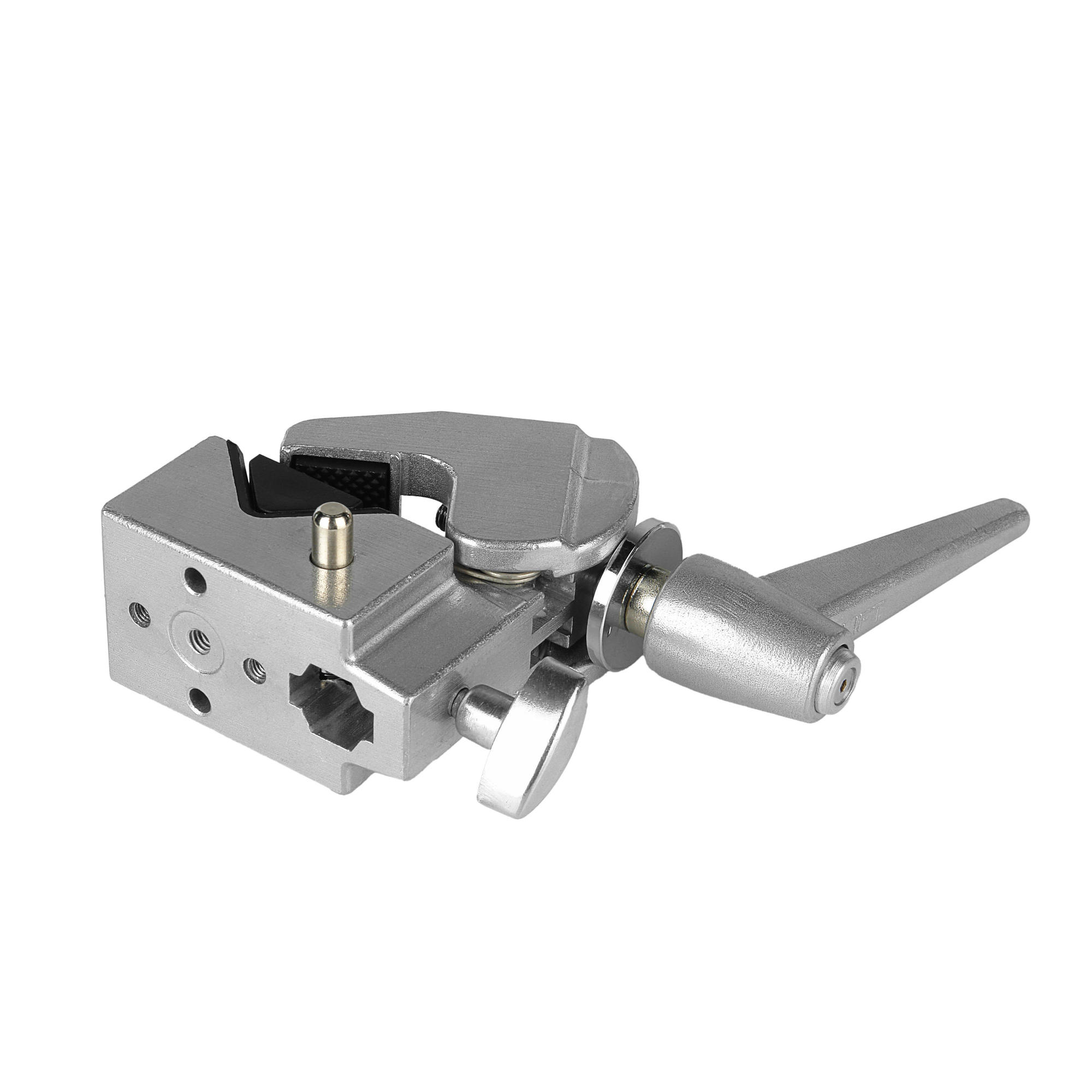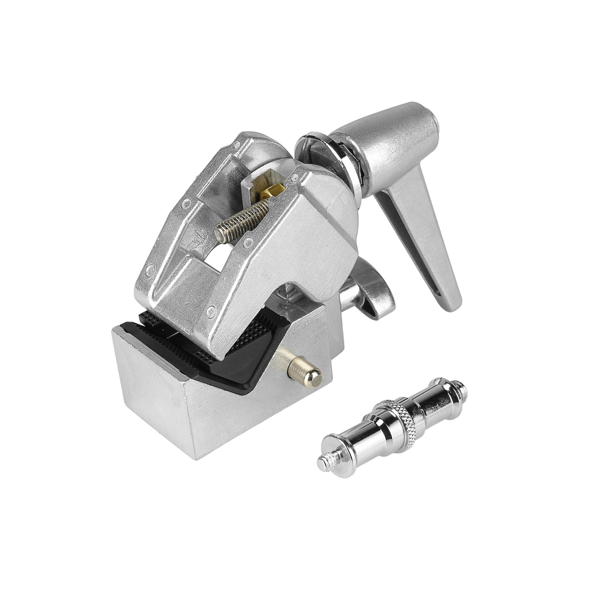 GreenBean MegaClamp MC-050 – мощный многофункциональный стальной зажим для крепления студийного оборудования и аксессуаров (фотоаппаратов, осветителей, зонтов, перекладин и других) к трубе шириной до 50мм. Пластиковая клиновая вставка позволяет также закреплять зажим на плоских поверхностях, таких полки, квадратные трубы и т.д.