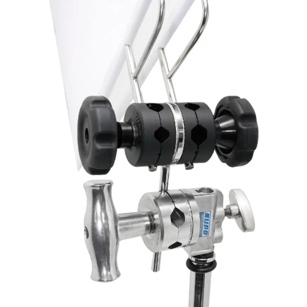 Двойная крепежная головка KUPO KCP-280B DOUBLE GAG GRIP HEADсостоит из двух зажимных дисков, установленных на стальной пластине со стержнем диаметром 10 мм и длиной 135 мм (5,3”). Позволяет установить два флага или рамки отражателей на одной крепежной головке.