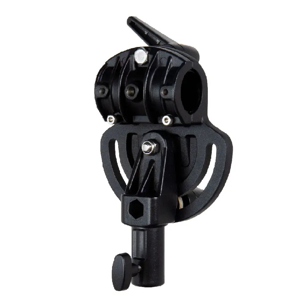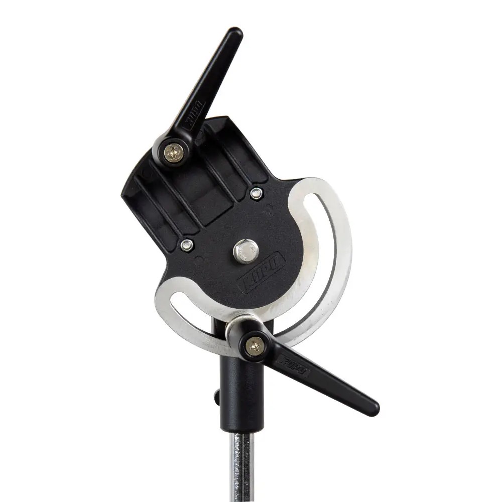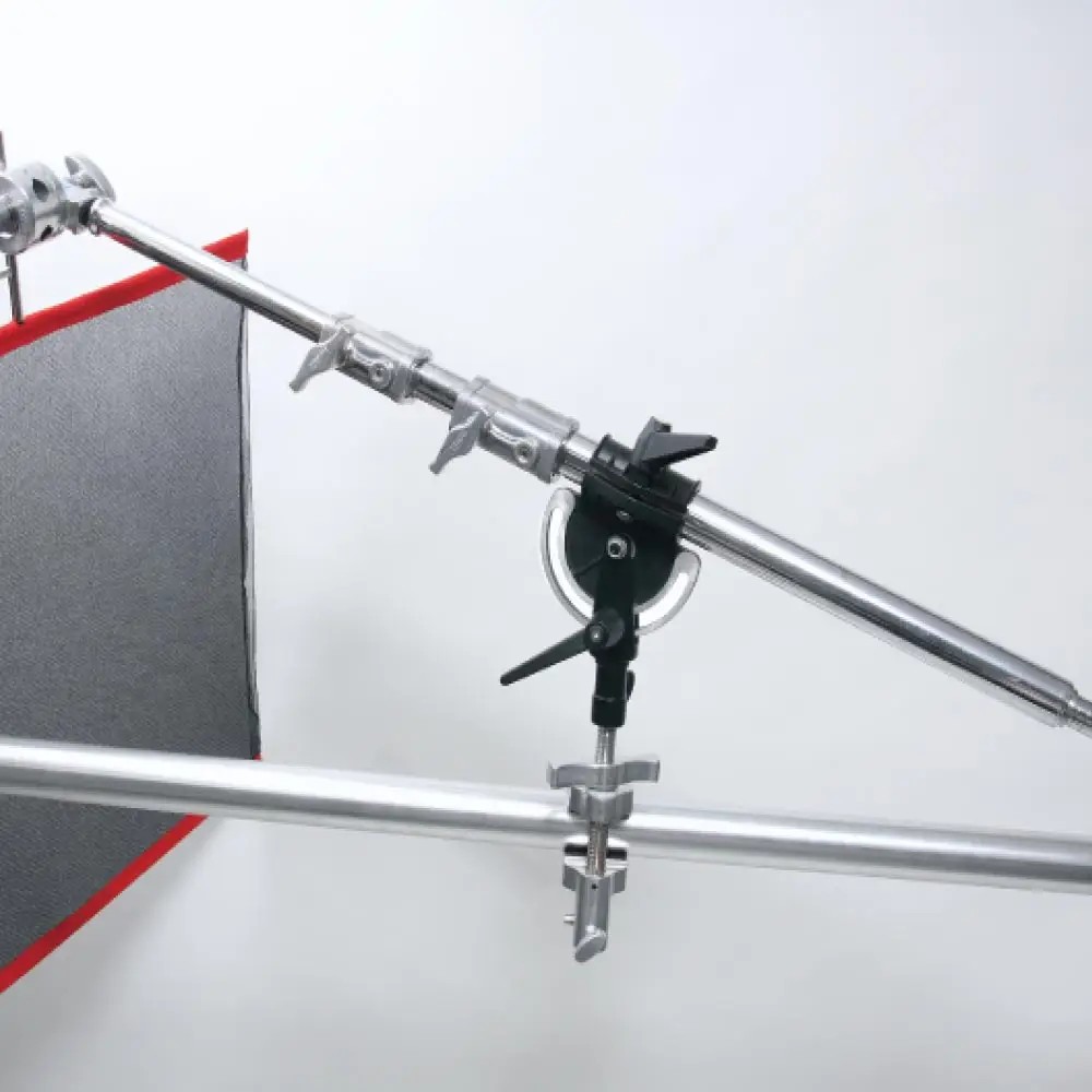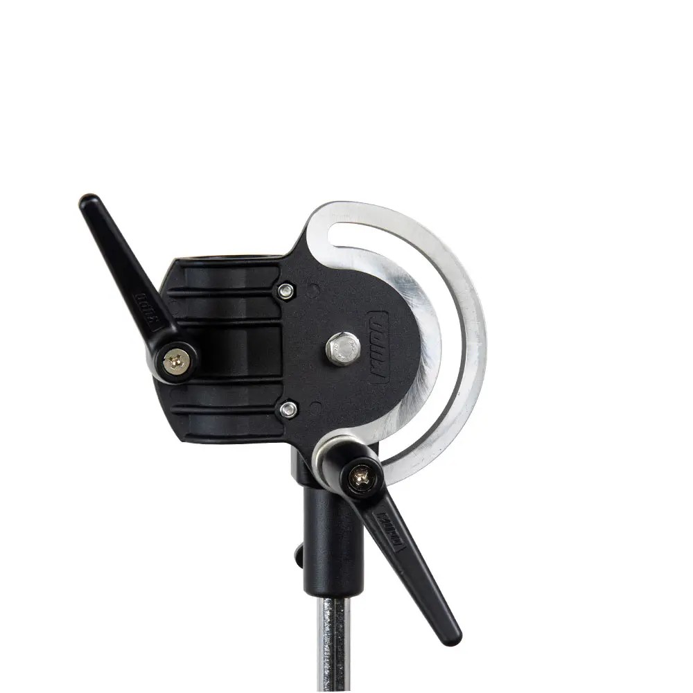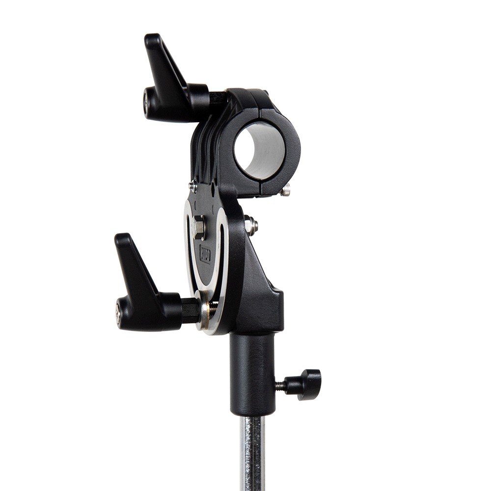 Зажим Kupo KCP-645 Pivoting Boom Arm Clamp — универсальный инструмент, позволяющий использовать колонну стойки C-Stand в качестве стрелы. Зажим выполнен из литого алюминия, внутри — пластиковая вставка, подходящая для труб диаметром 30–35 мм (1,2"–1,4"). Зажим оснащён штифтом 28 мм (Junior) и гнездом 16 мм (Baby), что позволяет устанавливать его в гнездо Junior или монтировать на штифт Baby, обеспечивая гибкость и широкие возможности применения.