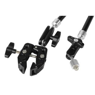 Magic Arm оснащен тремя независимыми двойными шаровыми шарнирами. Каждый шарнир имеет угол вращения 360° и наклон ±90°, а фиксация положения осуществляется тремя отдельными рукоятками. Общая длина кронштейна в развернутом состоянии достигает 600 мм, что позволяет выносить оборудование на значительное расстояние.