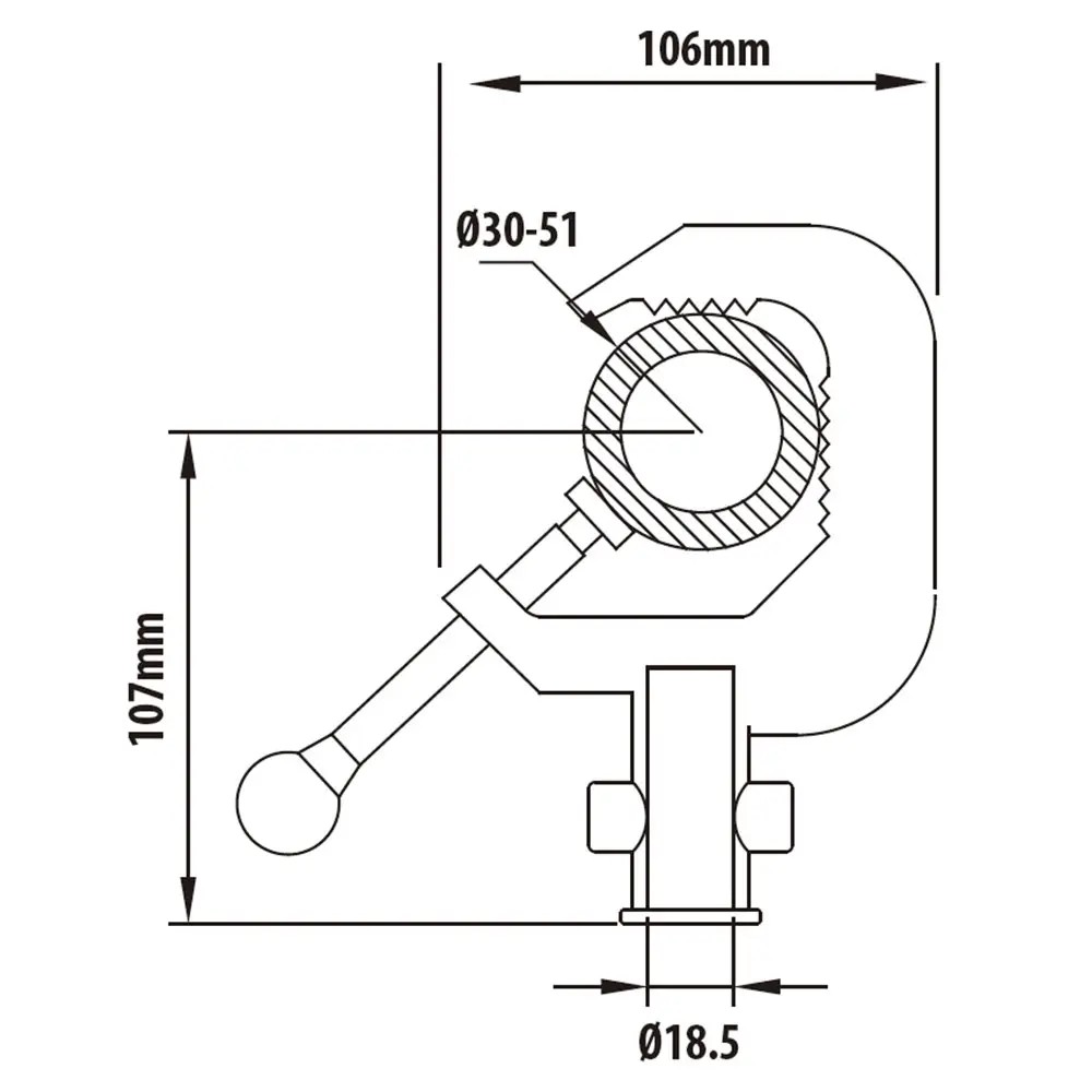 Зажим KUPO C-05 ALUMINUM ALLOY CLAMP с крюком C-типа изготовлен из прочного литого под давлением алюминиевого сплава, обладающего высокой прочностью и надёжностью. При весе всего 0,45 кг крюк выдерживает нагрузку до 40 кг. Подходит для труб диаметром от 30 до 51 мм. Оснащён гнездом 17 мм и винтом с резьбой 3/8"-16 для удобного крепления осветительного оборудования. Барашковая рукоятка обеспечивает быструю фиксацию и регулировку угла наклона прибора, а вращающаяся площадка на фиксирующем винте защищает трубу от повреждений. Особенно хорошо подходит для использования в студиях, театрах, фотостудиях и других профессиональных осветительных системах.