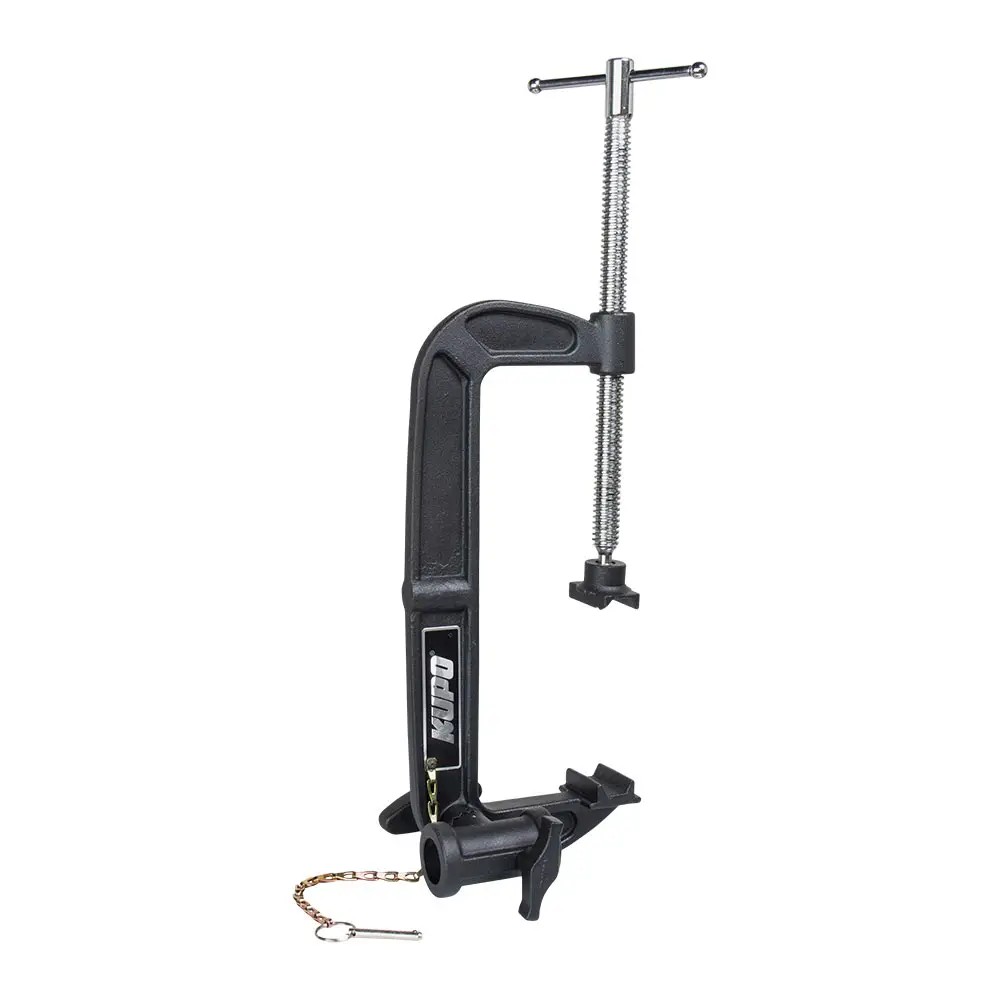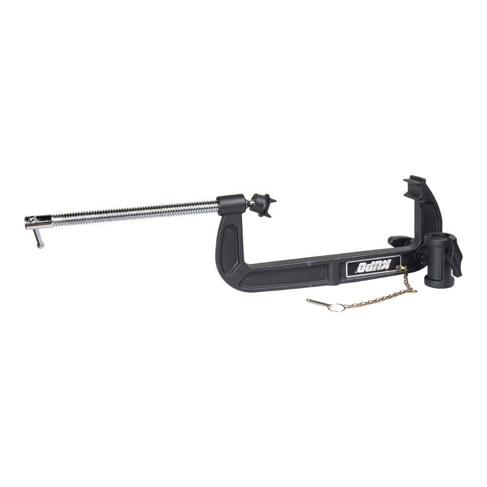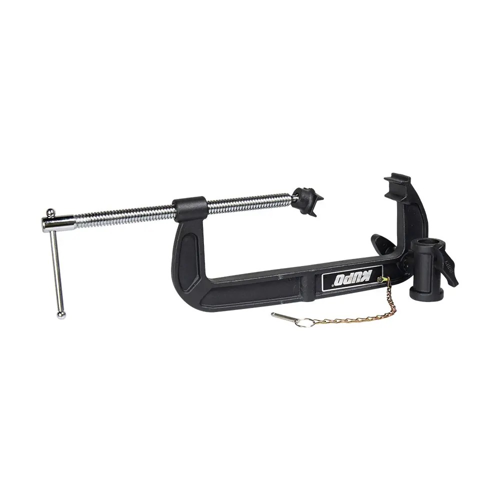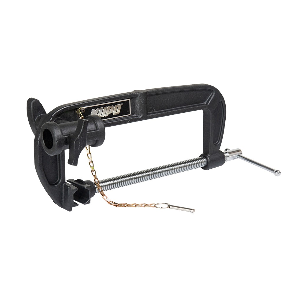Зажим (струбцина)KUPO KCP-129 HEAVY DUTY C-CLAMP длиной 10” изготовлен из кованой стали с черным порошковым покрытием и оснащен вращающимся гнездом Junior 1-1/8” (28 мм). Этот C-образный зажим позволяет крепить осветительные приборы, устанавливая его как в вертикальном, так и в горизонтальном положении. Встроенный страховочный трос обеспечивает дополнительную безопасность и всегда находится под рукой. Страховочный шплинт, закрепленный на тросе, предотвращает падение осветительного прибора при регулировке угла панорамирования, даже если ручка зажима ослаблена.