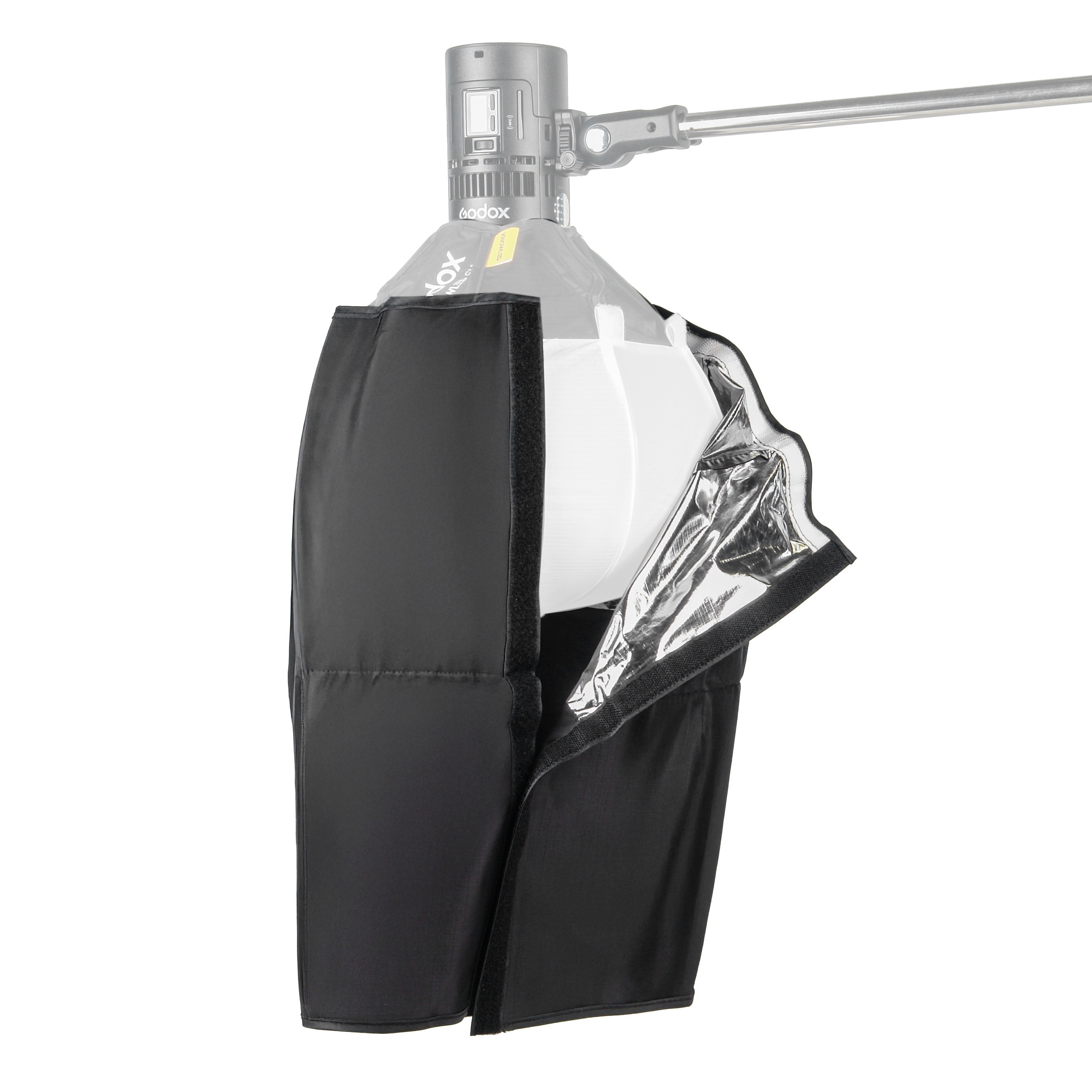 Шторки Godox Knowled SL1S предназначены для ограничения светового потока от сферического софтбокса SL1. Две непрозрачные тканевые шторки глубиной 43 см помогают избавиться от нежелательной засветки и сконцентрировать световой поток в необходимом направлении. Серебристая подкладка SL1S позволяет переотражать лучи и уменьшать световые потери. На софтбокс шторки крепятся с помощью липучек.
