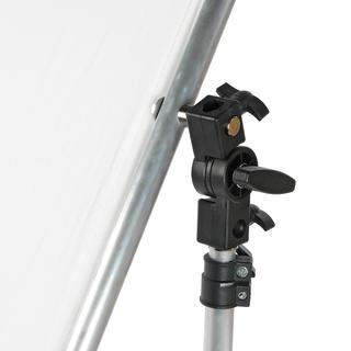 Двустороннее полотно отражателя используется для блокировки и перенаправления света. Черная сторона служит для создания глубоких направленных теней, серебристое – более яркого и контрастного освещения.