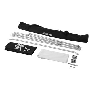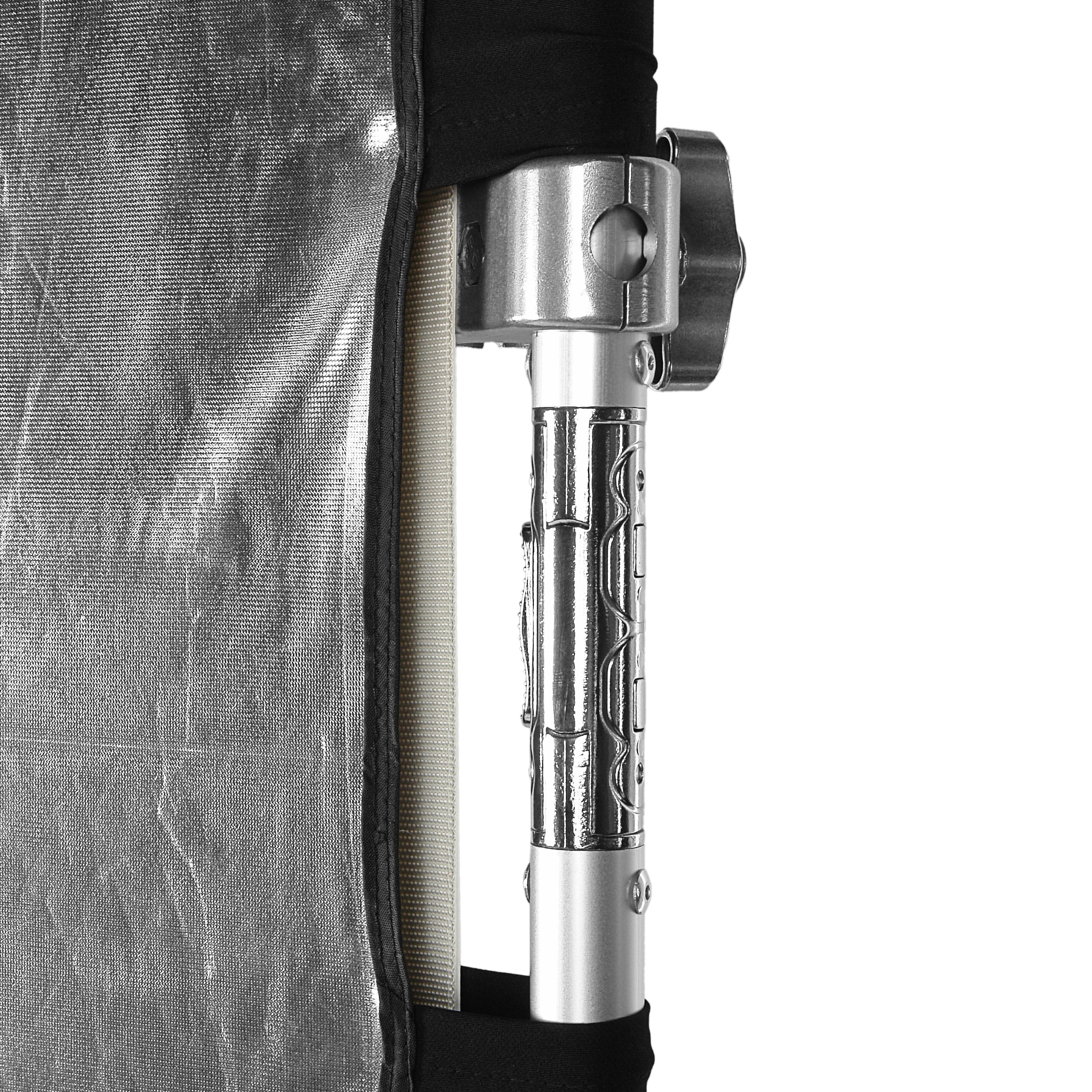 Чехол из просветного белого материала или чехол с четырьмя разными отражающими поверхностями натягиваются на собранную раму. Чехлы прошиты по периметру тесьмой и имеют отверстия для установки рукоятки-растяжки. Для установки отражателя на стенд или другой держатель, на С-образной рукоятке расположен установочный штифт диаметром 16 мм.