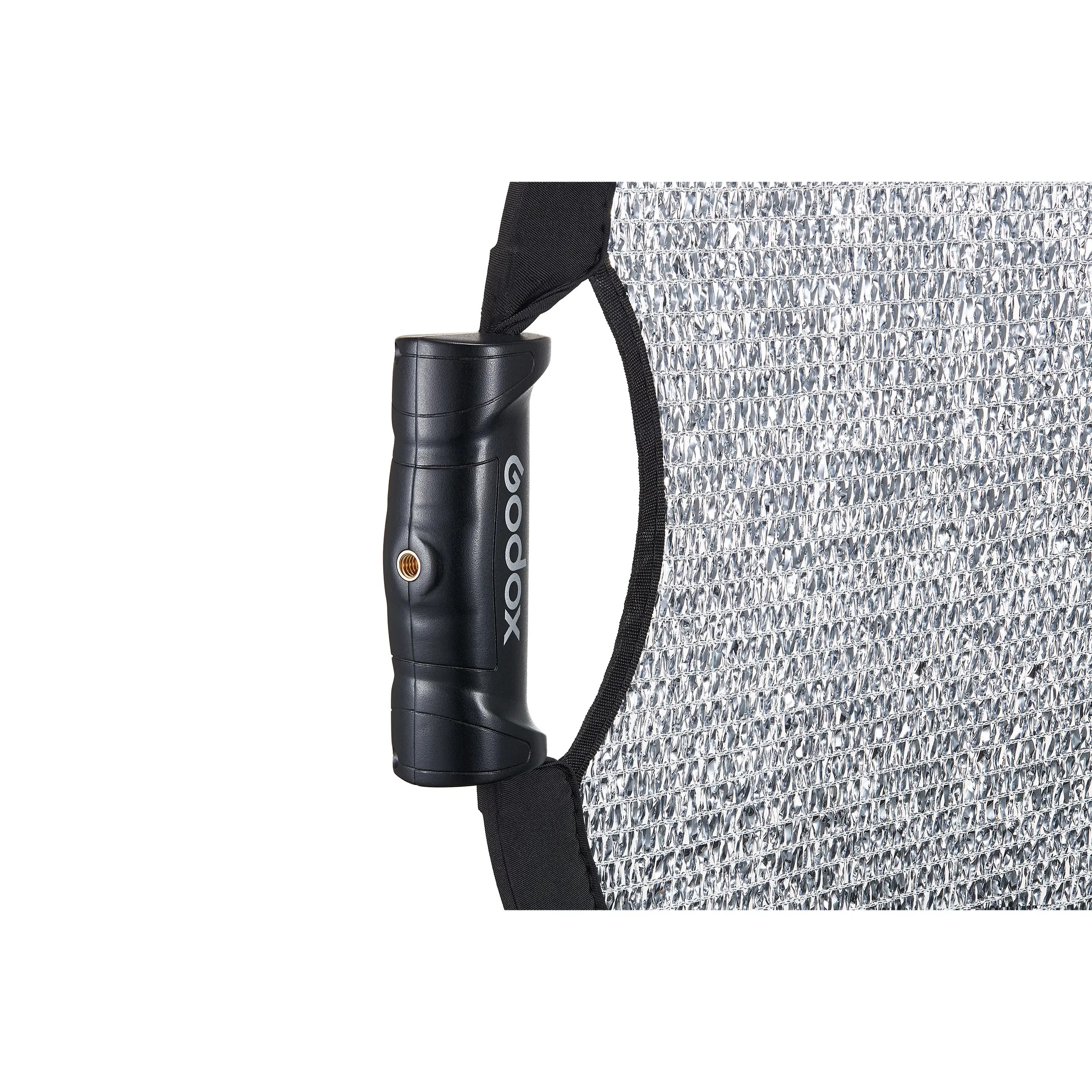 Ветроустойчивый отражатель имеет две эргономичные ручки с фактурным покрытием, благодаря которым его удобно удерживать в руках. Гнезда на ручках с резьбой 1/4’’ позволяют легко закрепить отражатель на стандартной стойке.