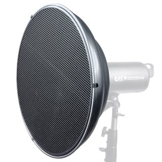 Комплектная сотовая насадка сужает и усиливает световой пучок, повышая контраст и четкость теней. Такой режим идеален для драматических портретов, выделения контуров лица, создания глубоких теней или акцентов в фэшн-съемке, где требуется выраженный светотеневой рисунок и минимальное рассеивание за пределами объекта.
