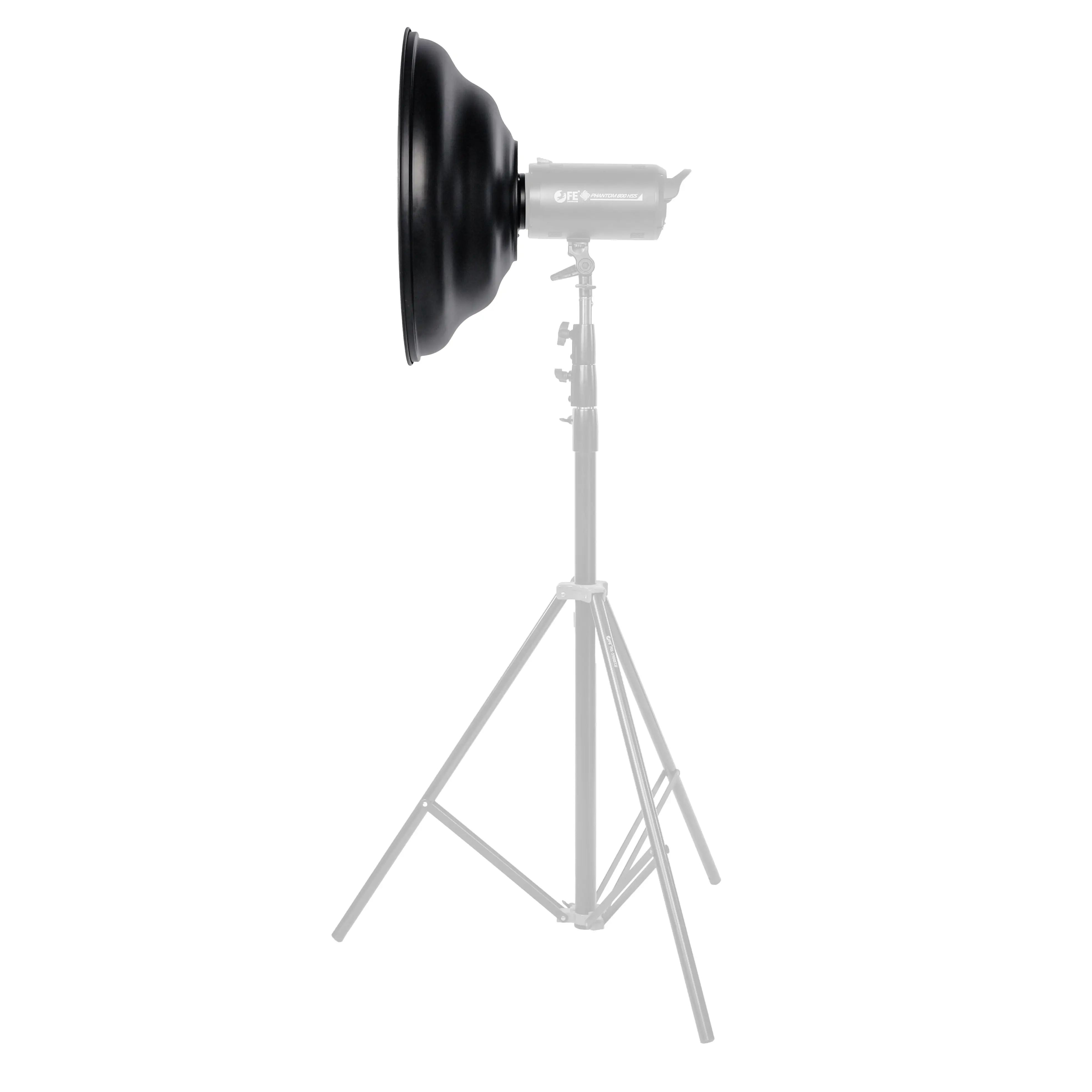 Профиль Wave создает более мягкое и равномерное распределение света по сравнению с классическими портретными тарелками, сохраняя при этом интенсивность и контрастность потока. Такой подход минимизирует резкие светотеневые переходы, деликатно прорабатывает тени и подчеркивает текстуру кожи, волос или одежды без потери объема и драматичности.