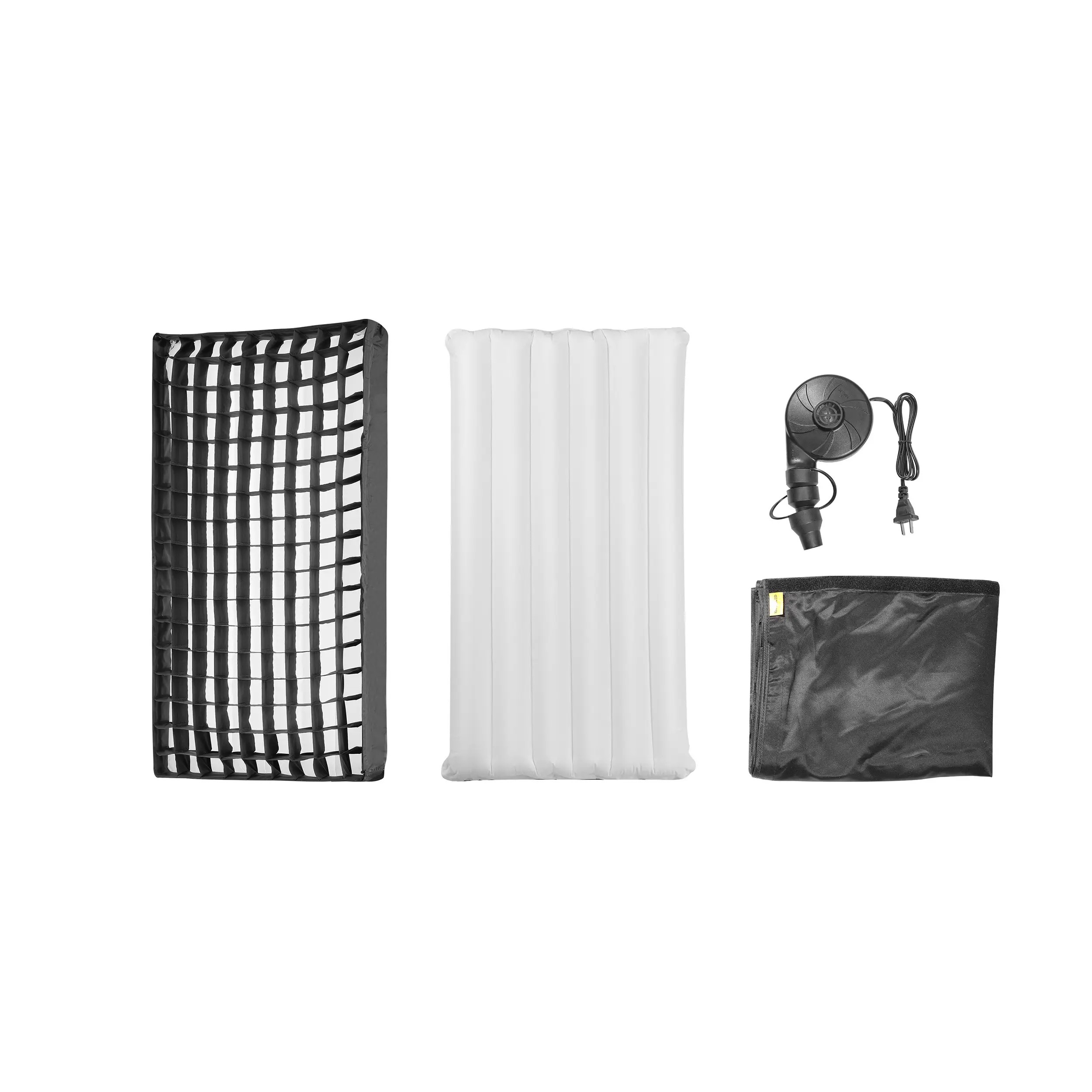 В сдутом виде FA400 компактно складывается и занимает совсем немного места. Вместе с аксессуарами и насосом он весит всего 2,1 кг. К софтбоксу прилагается сумка для хранения и перевозки размером 80х48 см, в которую помещается весь комплект.