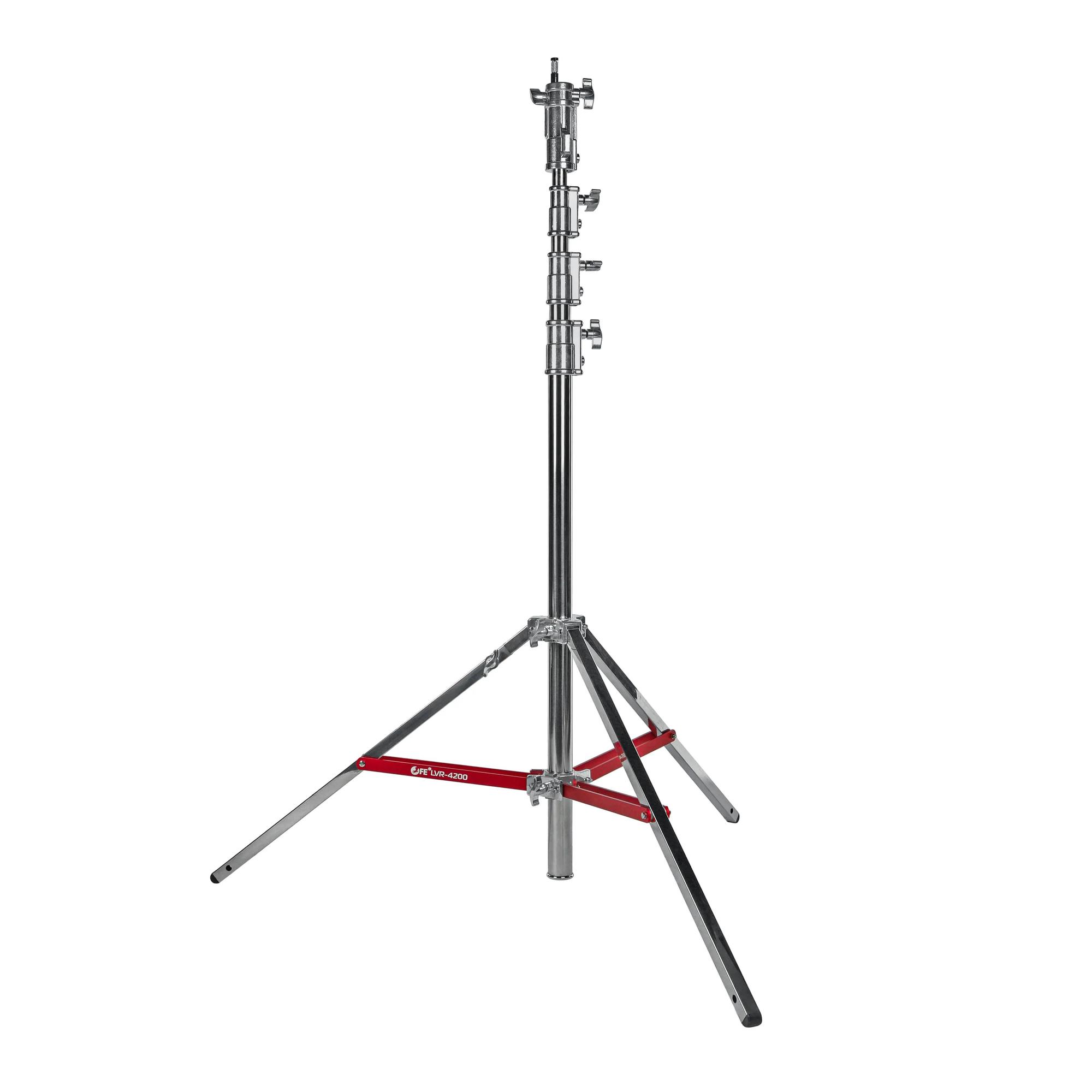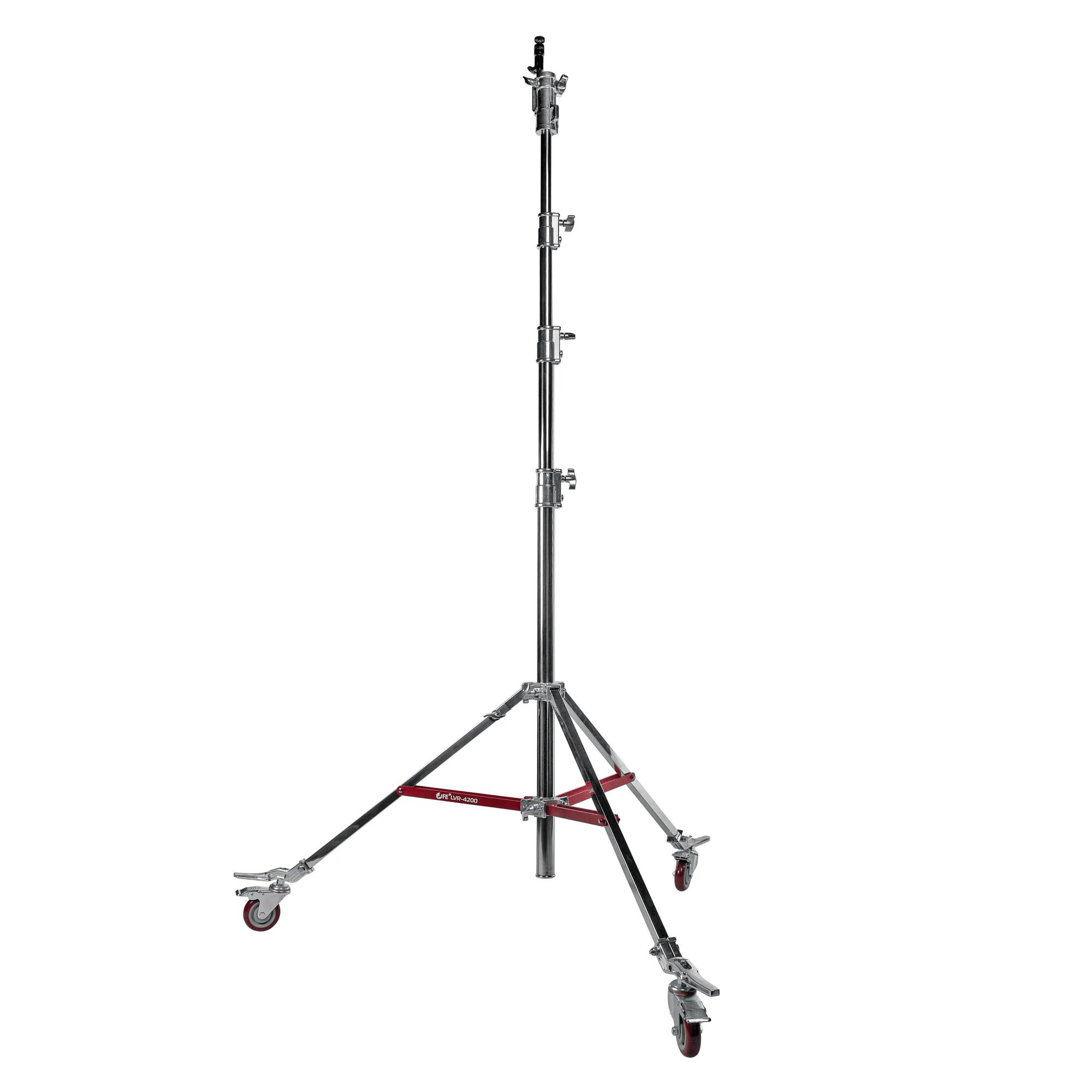 Четырехсекционная профессиональная стойка высотой 170-425 см с пружинной амортизацией выдерживает нагрузку до 30 кг. Для удобного перемещения по студии предусмотрены резиновые колеса с тормозным механизмом.