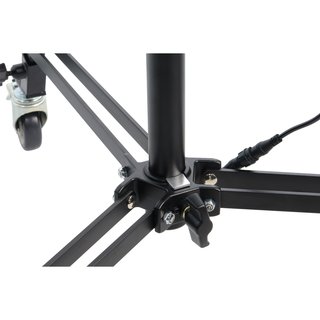 Стальное основание с профилем ног 25х25 мм и диаметром раскрытия 1020 мм гарантирует устойчивость стойки при любой высоте. Площадь основания оптимизирована для работы в условиях ограниченного пространства съемочной площадки. Общий вес стойки составляет 15 кг.