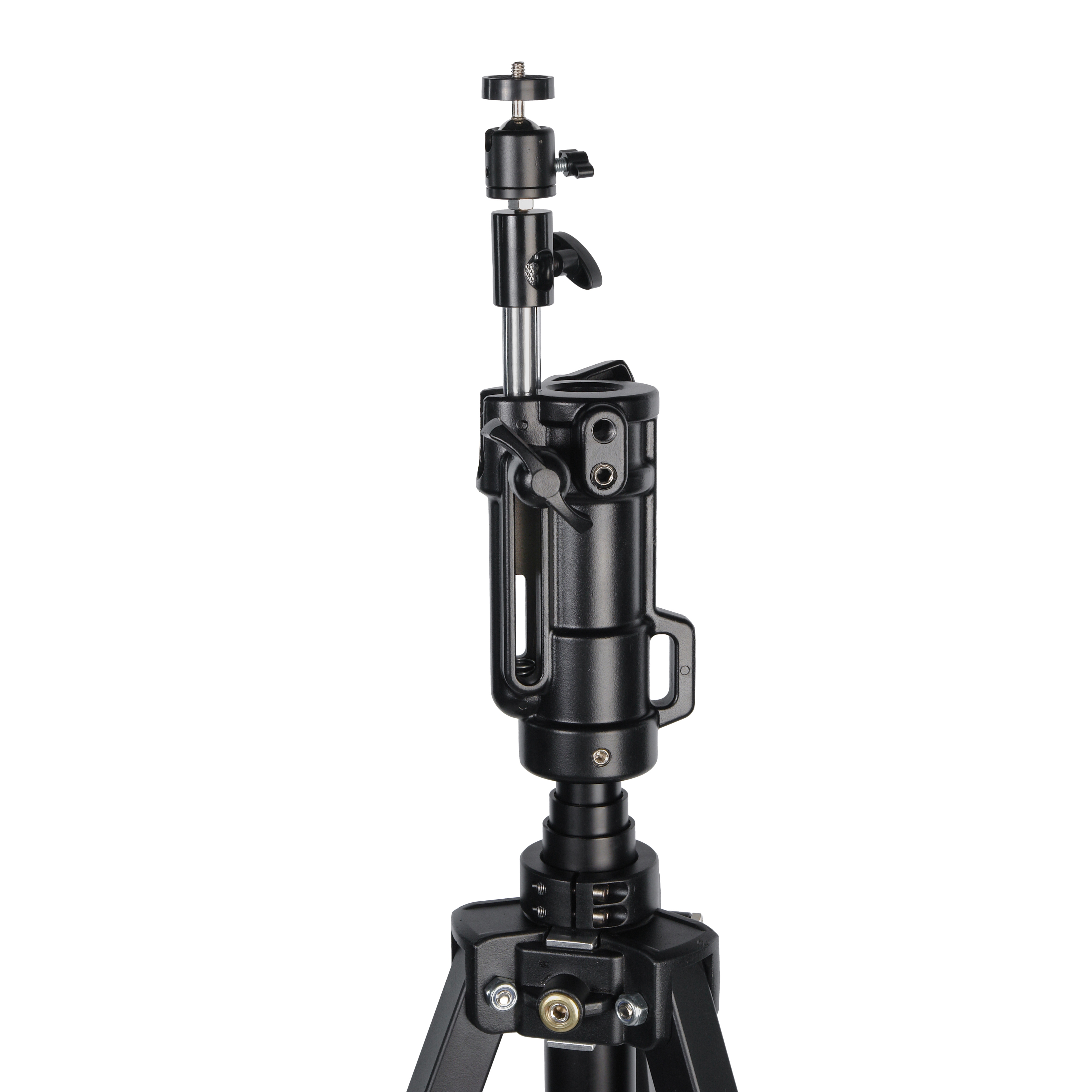 Студийная стойка с электроприводом оснащена шаровой мини-головкой с комбинированным креплением для установки цифровых камер. Адаптер имеет гнездо стандарта Junior 1-1/8” (28 мм) и наклонный штифт Baby 5/8” (16мм). Наличие проушины предоставляет возможность для страховки ценного оборудования.