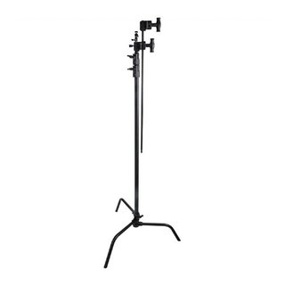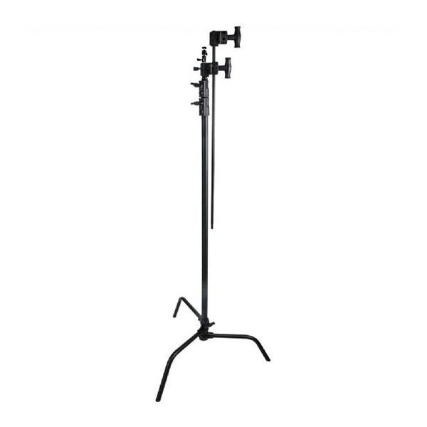 Стойка KUPO CS-30MKBH MASTER C-STAND GRIP ARM с шаровой головкой для установки цифровых фото- и видеокамер. В основании находятся две подпружиненные раздвижные ножки, которые устанавливаются в фиксированных положениях, а третья ножка регулируется по высоте путем ослабления ручки-фиксатора и перемещается вверх/вниз по колонне. Это позволяет поднять одну ножку стойки выше остальных, чтобы выровнять стойку на наклонной или неровной поверхности.