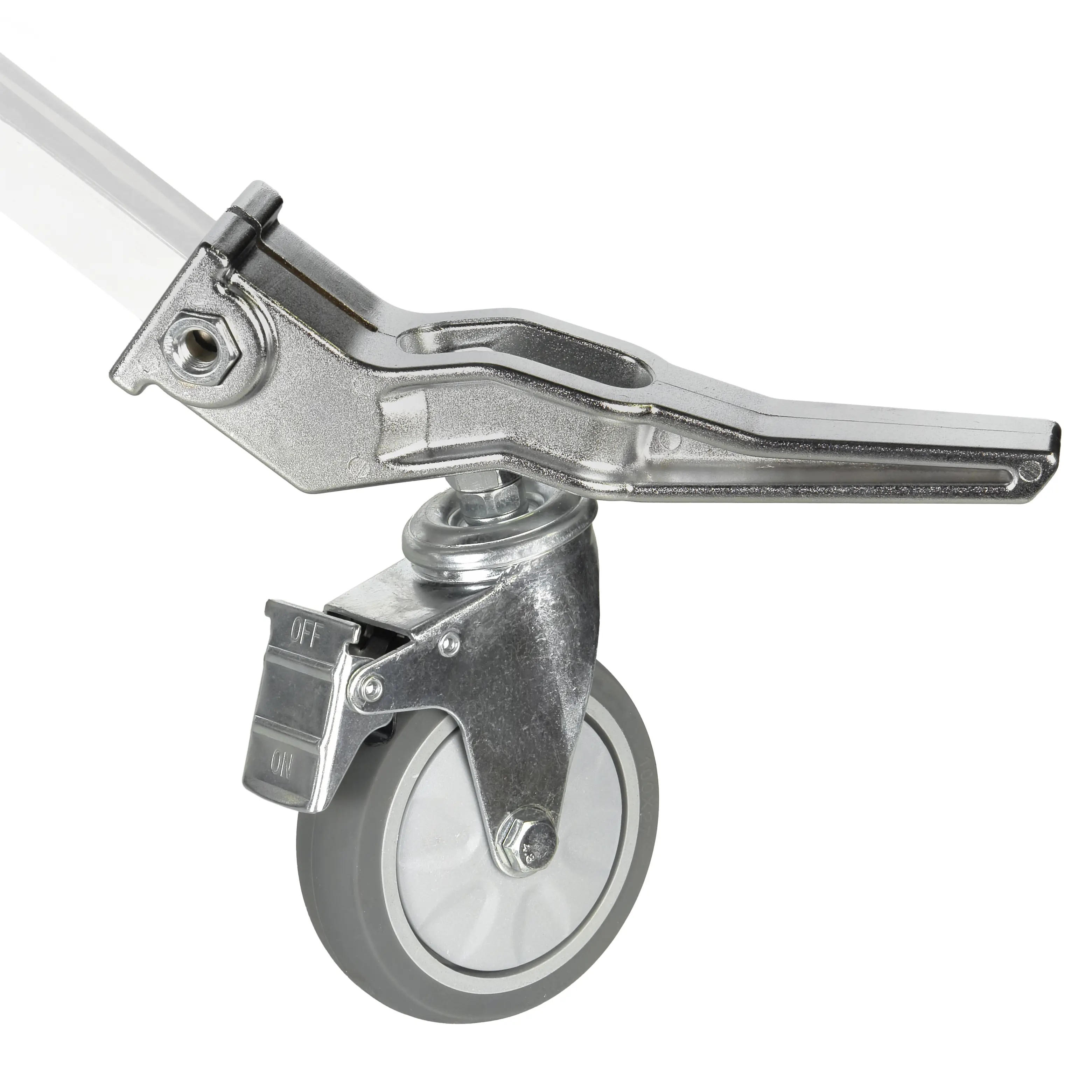 Колеса диаметром 100 мм с полиуретановым протектором защищают напольное покрытие от повреждений и позволяют бесшумно перемещать оборудование.